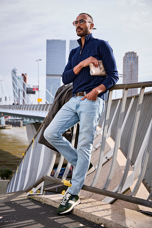Einzigartig wie Ich. Alle Menschen sind gleich: Jeder ist anders. Jedenfalls ein bisschen. Und das muss gefeiert werden! Mit einer Jeans, die die Individualität unterstreicht ohne sich gleich ganz neu zu erfinden. Klar – Denim, fünf Taschen, zwei Beine – so weit, so normal. Aber dieses fast schon zu himmlische Blau mit den Kontrasttaschen vorn und hinten, die nicht nur farblich, sondern auch haptisch Akzente setzen, das ist Ich statt alle. Aber auf die ganz entspannte Art. Modern und lässig wirkt der Look in Kombination mit einem tiefblauen Hemd. Blau zu Blau ist unsere Lieblingskombination für den kommenden Frühling!