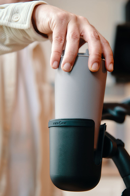 Ob Kaffee, Fruchtsaftschorle oder isotonische Sportgetränke mit Elektrolyten – der TWIST cup holder ermöglicht in Verbindung mit der TWIST stroller base die Mitnahme des eigenen Kaffeebechers (mit oder ohne Henkel) sowie der eigenen (Isolier-)Flasche am Golf-Trolley. Der spezielle Getränkehalter überzeugt durch seine bequeme, intuitive und schnelle Handhabung. Selbst bei einer Höhenverstellung des Trolley-Griffs lässt er sich dank flexibler Winkelverstellung jederzeit in eine aufrechte Position bringen. Im Inneren des cup holders sorgen Gummilaschen für einen sicheren und festen Halt – auch wenn es einmal holprig wird. Gleichzeitig wirken sie auf unebenen Wegen als stoßdämpfendes Element.