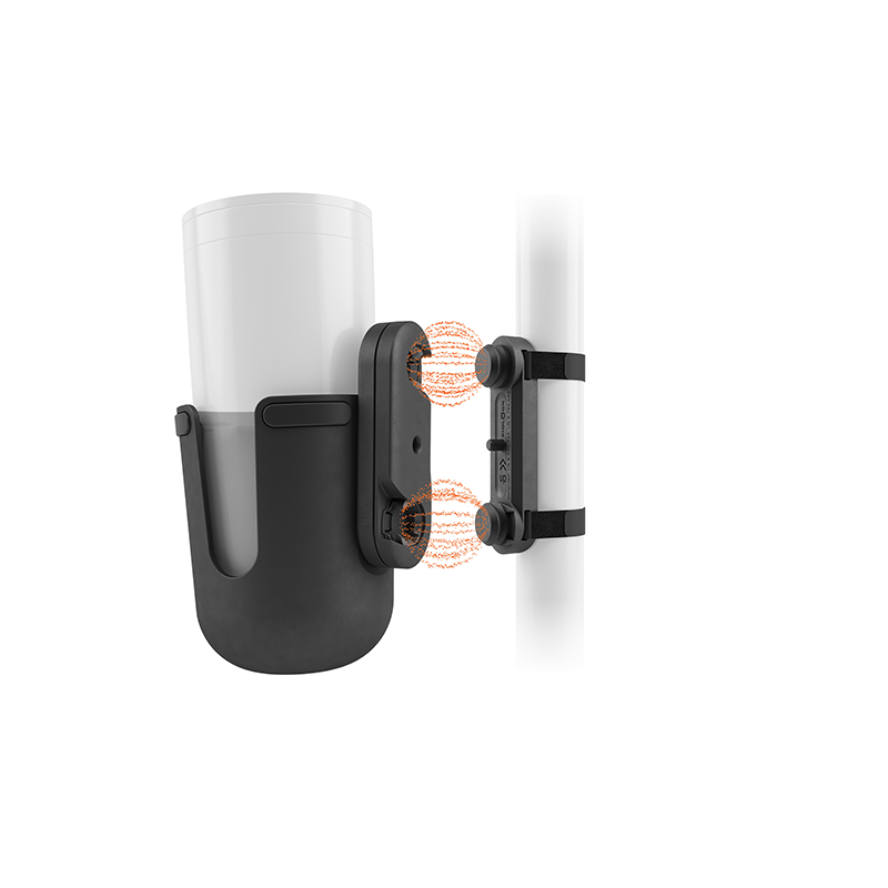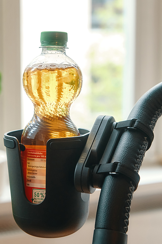 Ob Kaffee, Fruchtsaftschorle oder isotonische Sportgetränke mit Elektrolyten – der TWIST cup holder ermöglicht in Verbindung mit der TWIST stroller base die Mitnahme des eigenen Kaffeebechers (mit oder ohne Henkel) sowie der eigenen (Isolier-)Flasche am Golf-Trolley. Der spezielle Getränkehalter überzeugt durch seine bequeme, intuitive und schnelle Handhabung. Selbst bei einer Höhenverstellung des Trolley-Griffs lässt er sich dank flexibler Winkelverstellung jederzeit in eine aufrechte Position bringen. Im Inneren des cup holders sorgen Gummilaschen für einen sicheren und festen Halt – auch wenn es einmal holprig wird. Gleichzeitig wirken sie auf unebenen Wegen als stoßdämpfendes Element.