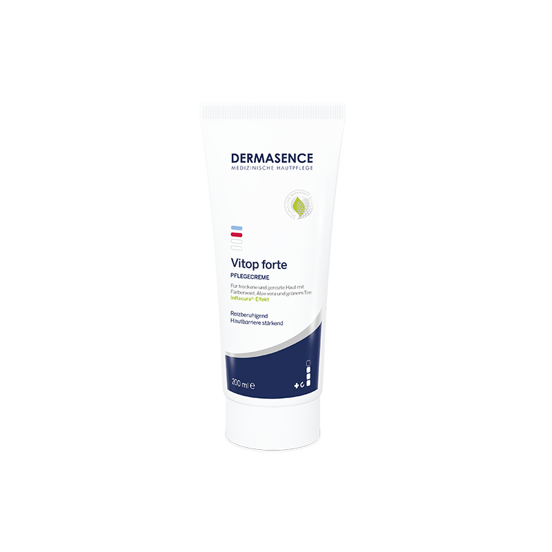 Der hautverträgliche Aktiv-Komplex aus Färberwaid, Aloe Vera und grünem Tee wurde speziell für besonders trockene, entzündliche Haut entwickelt. Als Langzeitpflege konzipiert, können die Vitop forte-Produkte bei regelmäßiger Anwendung nicht nur im Akutfall Entzündungssymptomen wirksam vorbeugen.