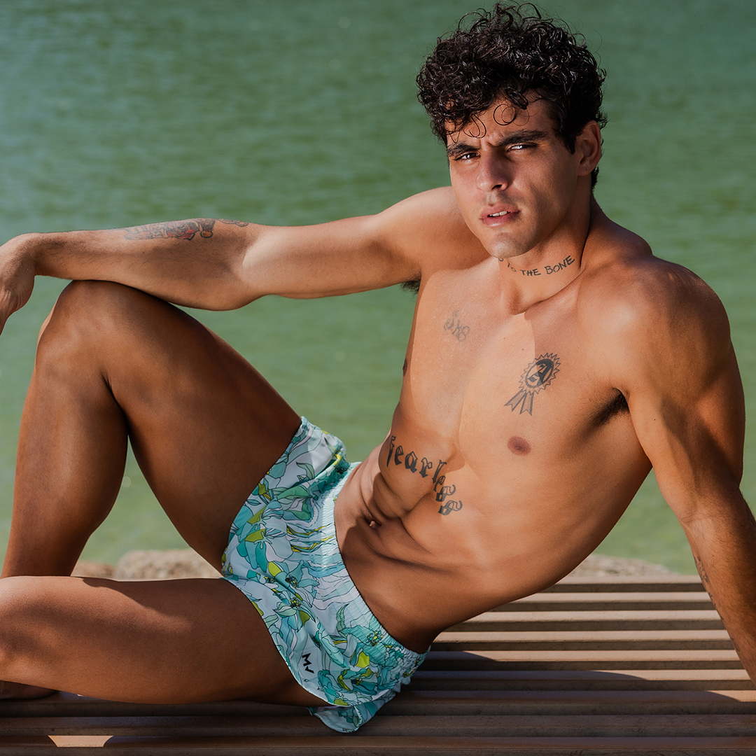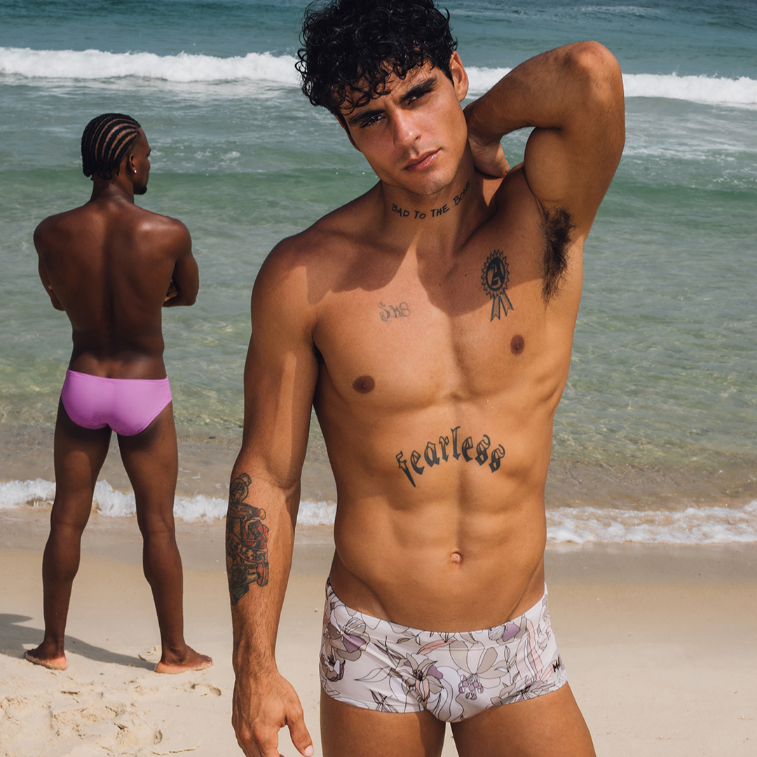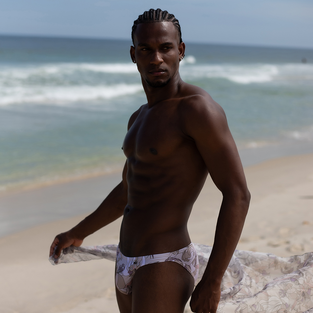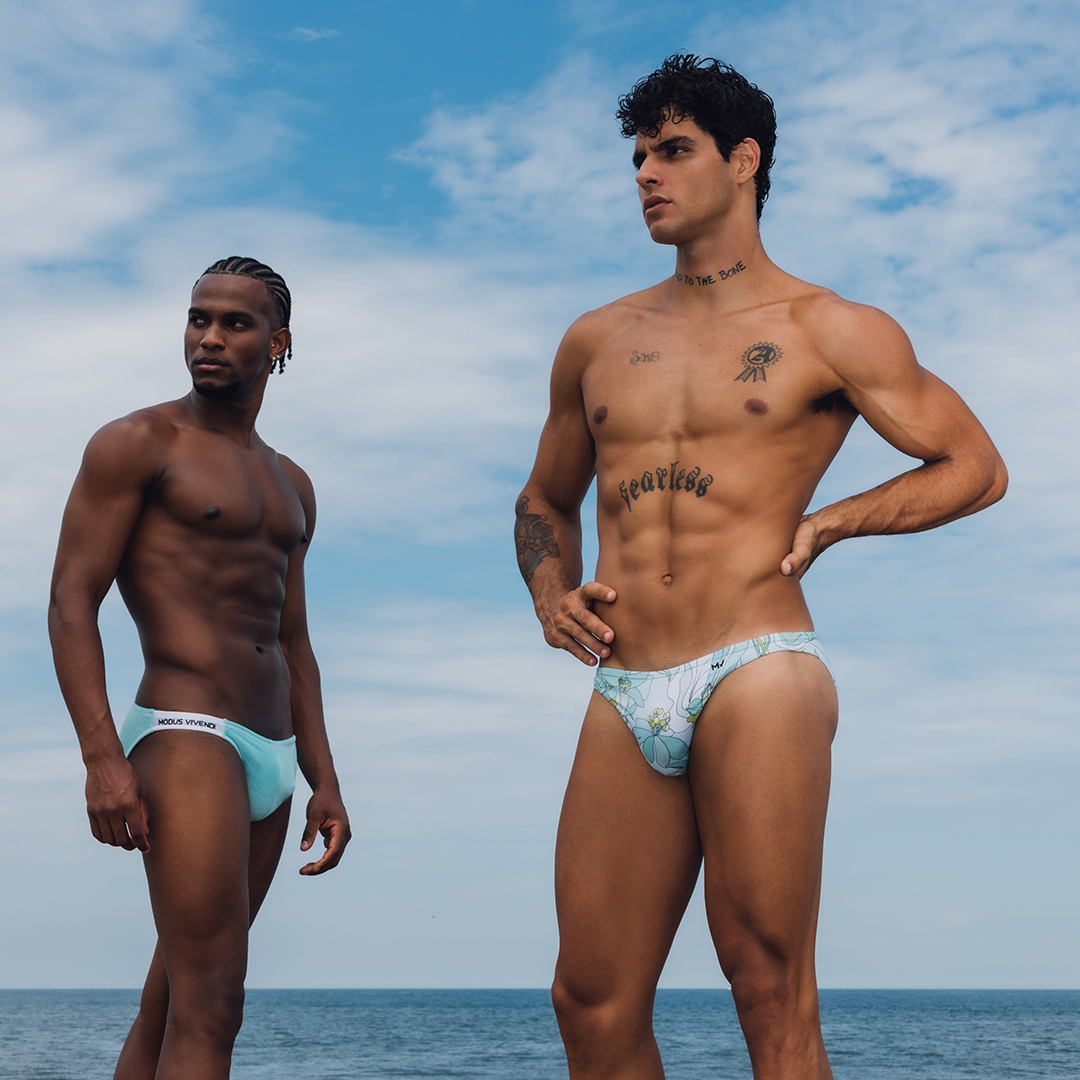 This trés chic swimwear line designed to celebrate the male form while embracing sustainability. Available in a variety of silhouettes—swim briefs, swim shorts, swim thongs, tank tops, and shawls—the collection merges style and conscience. Every piece created from eco-friendly, fast drying elasticated fabric made entirely from recycled yarns sourced from plastic bottles.