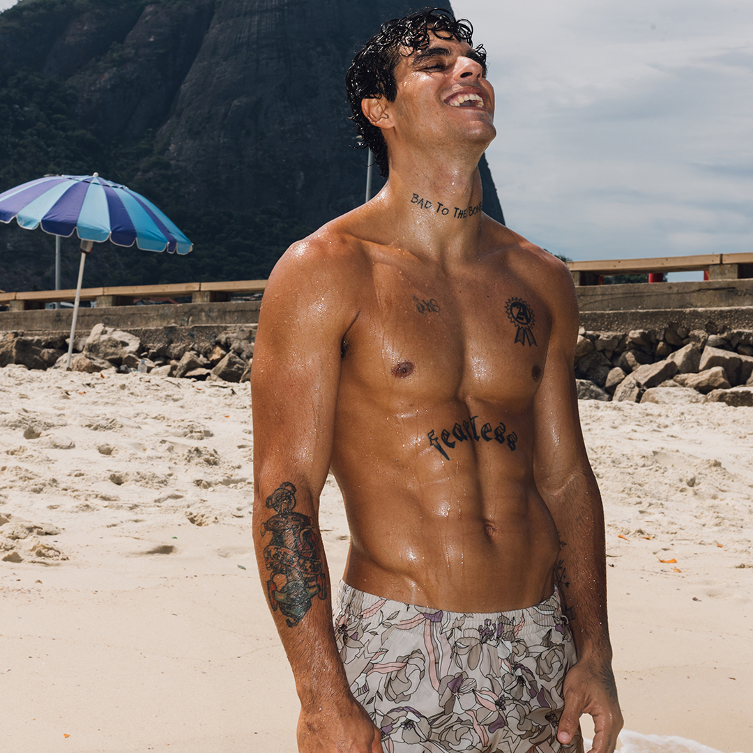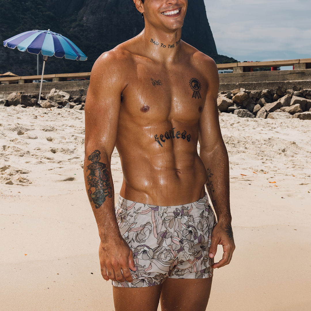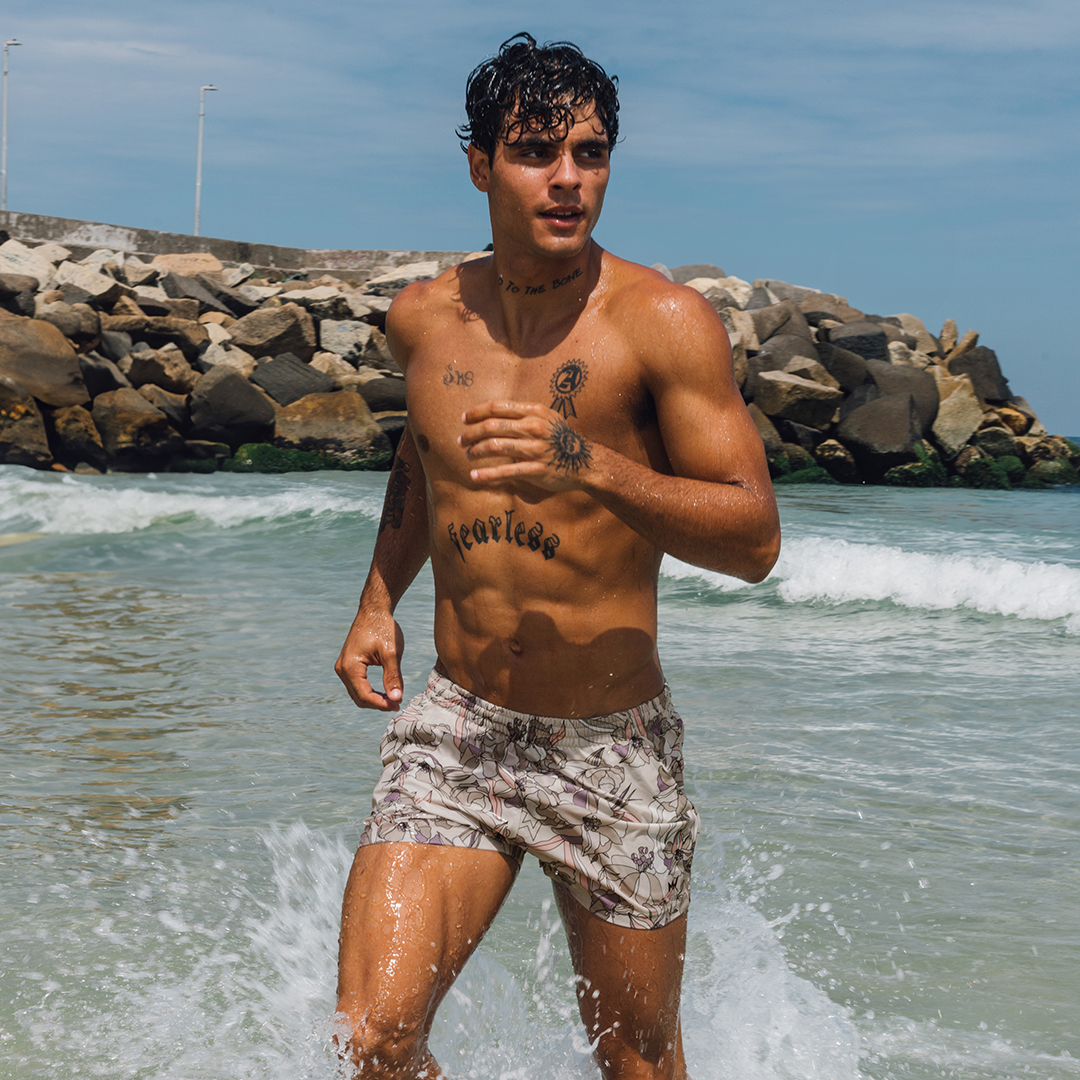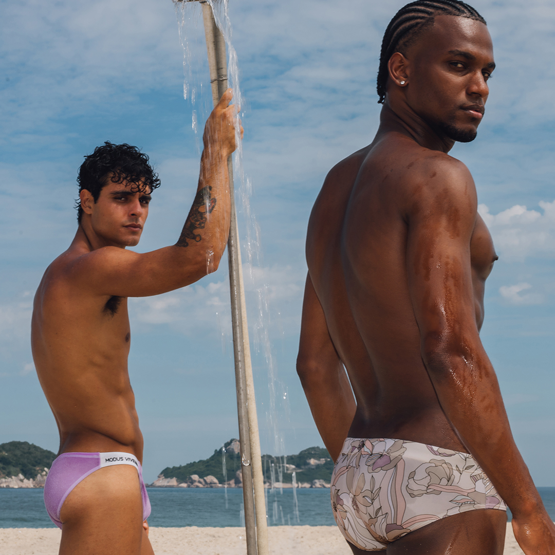 This trés chic swimwear line designed to celebrate the male form while embracing sustainability. Available in a variety of silhouettes—swim briefs, swim shorts, swim thongs, tank tops, and shawls—the collection merges style and conscience. Every piece created from eco-friendly, fast drying elasticated fabric made entirely from recycled yarns sourced from plastic bottles.