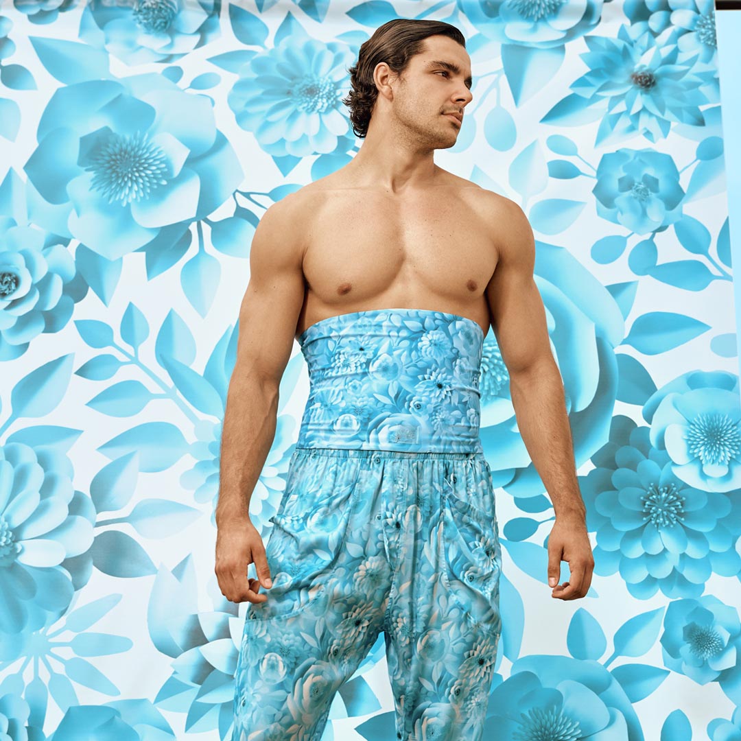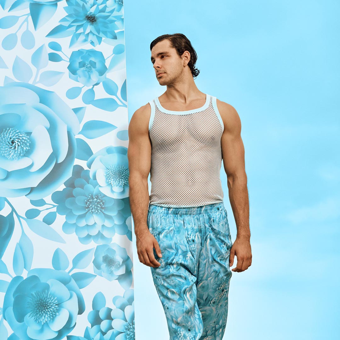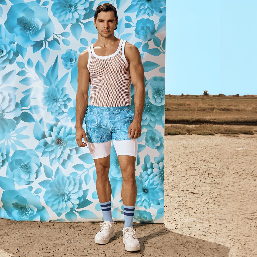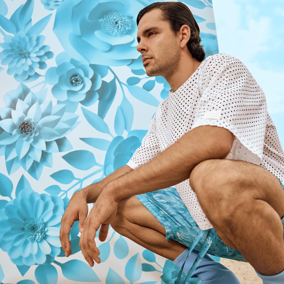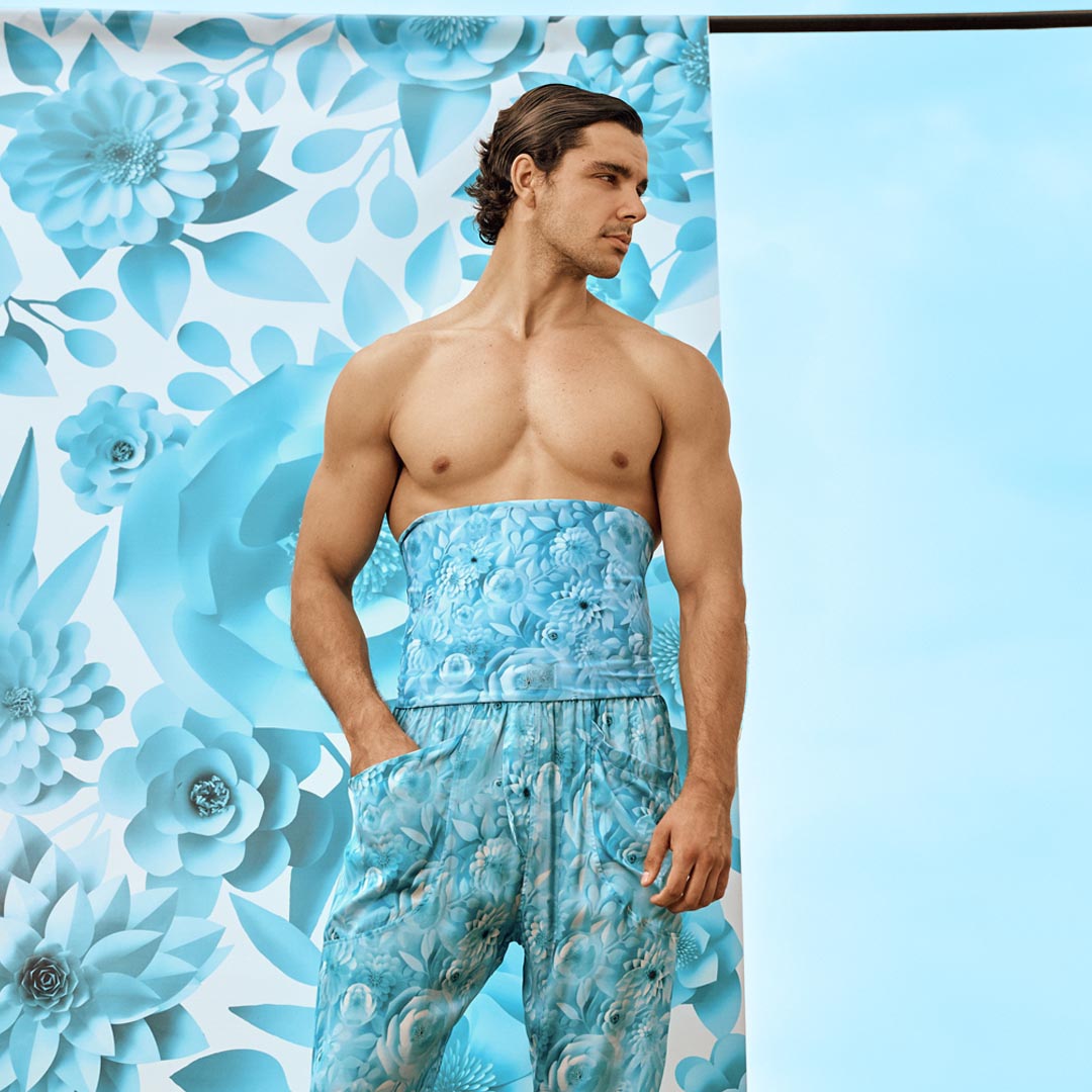Drawing inspiration from the meticulous and delicate art of origami, MODUS VIVENDI’s design team has created a collection that embodies both the intricate beauty and precision of this ancient craft. The campaign features a man elegantly dressed in MODUS VIVENDI Origami apparel, standing in the vast, tranquil expanse of a desert. The stark, minimalist background enhances the vibrant and intricate blue floral designs of the clothing, highlighting the contrast between nature’s raw beauty and the sophisticated artistry of the collection. Each photograph encapsulates the essence of the Origami Line – a harmonious blend of traditional Japanese aesthetics and contemporary fashion.