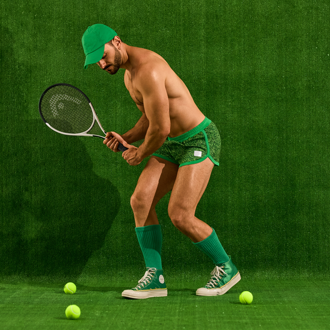 To showcase the dynamic spirit of this line, the Sunshine campaign captures a playful, athletic mood: a man in Sunshine underwear confidently takes to the tennis court, radiating energy, movement, and eco-conscious style. It’s a bold visual metaphor that celebrates both performance and sustainability—because looking good and doing good should go hand in hand.