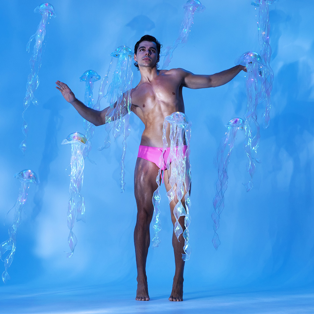 Inspired by the natural rhythm of the sea and the hypnotic beauty of jellyfish, the campaign blends serenity with sensuality. The delicate motion of translucent creatures mirrors the lightweight fluidity of the Waffle fabric, capturing the essence of movement, freedom, and the joy of self-expression. The result? A visual escape into a colorful aquatic world, where playful design meets nature’s elegance.