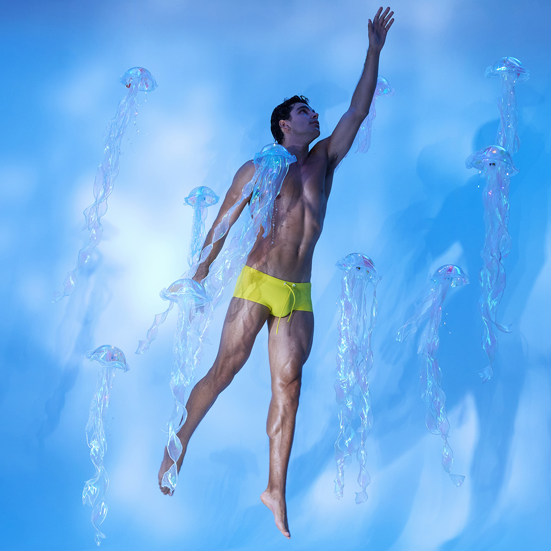 MODUS VIVENDI introduces its latest swimwear story – the “Jellyfish” Campaign – as part of the Swimwear 2025 Collection, spotlighting the all-new Waffle Swimwear Line. Shot in a dreamlike underwater setting, the campaign features a man swimming and floating freely among mesmerizing jellyfish, wearing Waffle swimsuits in four vibrant, standout colors.