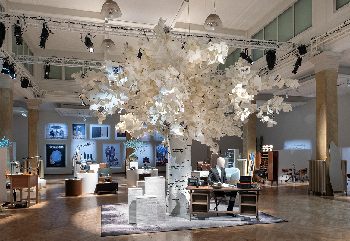 Conveying this theme at the heart of the showroom was “The Tree of Writing,” a captivating art installation created in collaboration with the art studio Edinas Paper, Montblanc’s longtime partner. Crafted entirely from paper, the tree features book pages as leaves, with each page carrying an inspirational quote selected by Montblanc Artistic Director Marco Tomasetta. With its flourishing branches overlooking the showroom, “The Tree of Writing” symbolizes how writing traverses time and space to connect people, preserve memories and inspire generation after generation, just as it extends throughout Montblanc’s roots to inspire its collections today.