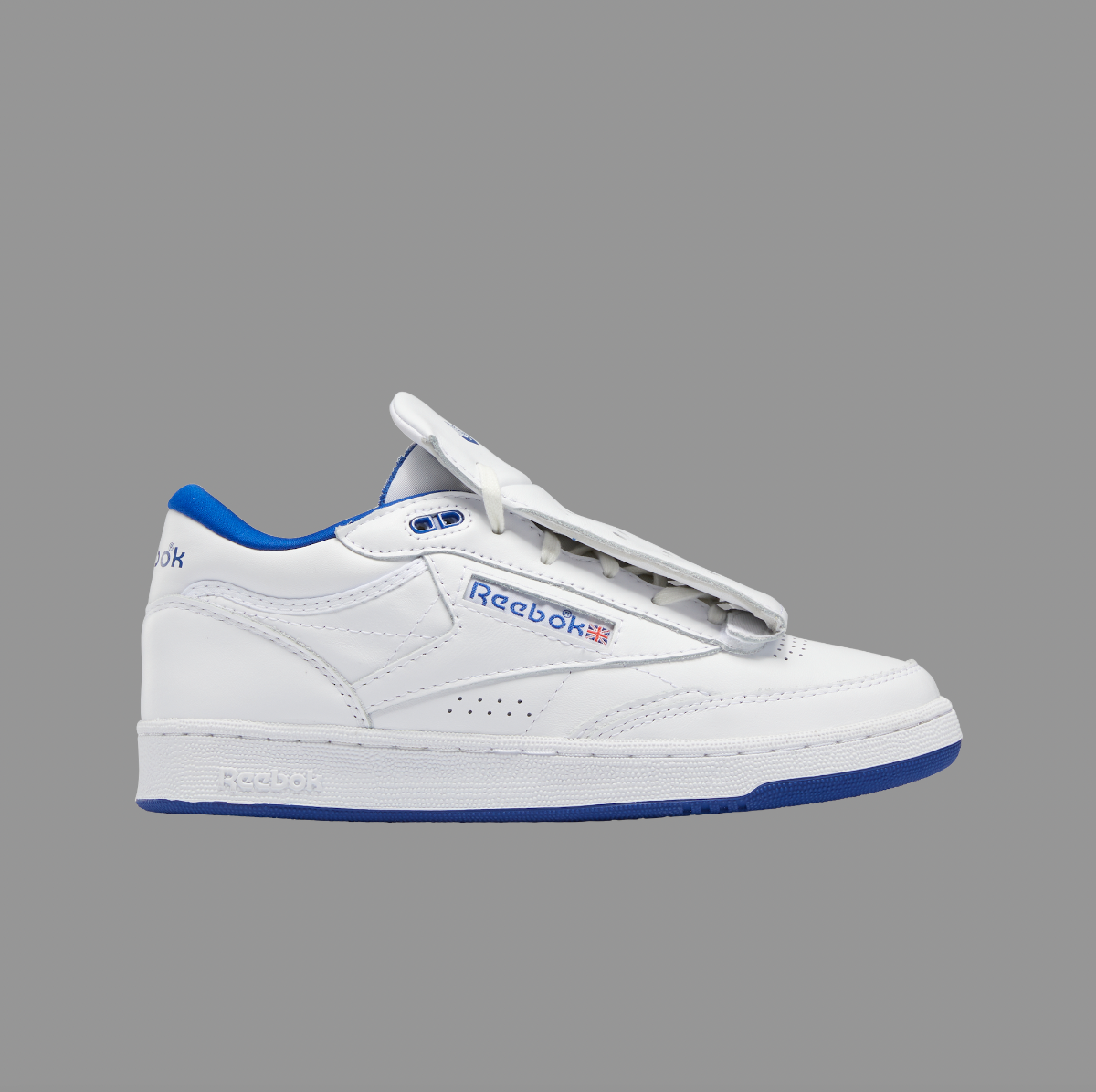 Der Mountain Research x Reebok Club II Mid ist subtil und praktisch und wurde von der Tennisclub-Kleidung der 80er Jahre, den traditionellen Club C-Elementen und Cricket-Schuhen inspiriert. „Die Idee war, etwas Einfaches und dennoch Dekoratives zu kreieren“, so Kobayashi weiter. „Der minimalistische Look soll der strengen Tennisclub-Kleiderordnung der damaligen Zeit entsprechen.“ Vor allem die äußere Zunge ist mit einem abnehmbaren Schnürsenkelschutz oder einer „Haube“ versehen, die die originale perforierte Schaumstoffzunge des Club C und die klassischen Cricket-Schutzvorrichtungen, die „Pats“, nachahmt.