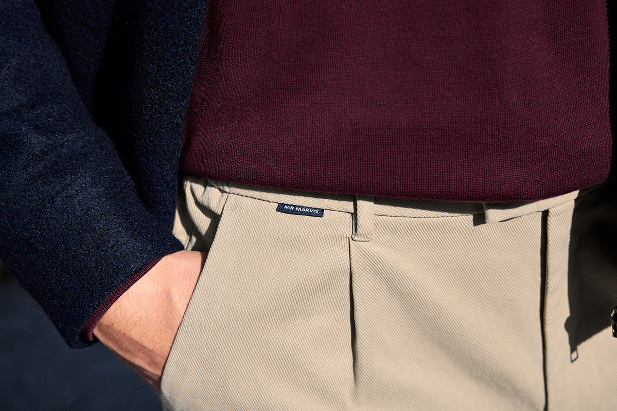 The Heavy Classics are suitable for everyday use and have an extended and partially elastic waistband. This ensures a comfortable fit all day long. The pleats give the trousers a timelessly elegant touch. Thanks to the zip with jigger and hook closure, it can also be closed securely and smoothly. Additionally, the trousers feature slanted side pockets – including the brand’s signature hidden zip pocket for secure storage of valuables. The tone-on-tone embroidered, octagonal MR MARVIS emblem, together with the short inseam, creates an elegantly modern, slightly cropped look. The Heavy Classics are available in eight elegant, iconic MR MARVIS colors, including the classic gray Newmans and the dark blue Deeps. These hand-picked colors will spice up your wardrobe. They fit seamlessly into your everyday looks and give your wardrobe robust elegance for the current autumn/winter season.