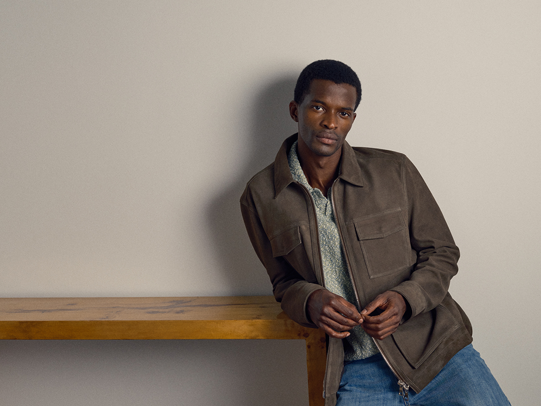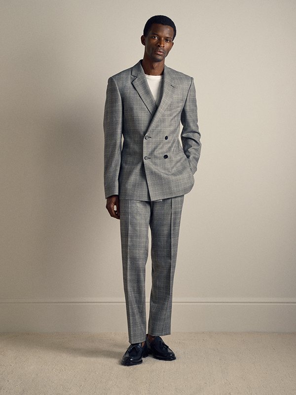 Tailoring takes centre stage, merging traditional silhouettes with relaxed resortwear, offering a range of refined, modern linen suiting for understated yet elevated appeal. Highlights include a double-breasted dark green puppytooth linen suit, alongside new single breasted linen suits in dark grey, mushroom and pale pink. Lightweight knitwear is also a key focus, offering classic polos and short-sleeve cardigans crafted from premium fabrics, including cotton, linen, and plush terry. Mr P.’s signature suede jacket silhouette is revisited for spring in soft tonal shades. This exploration of texture applied to timeless design emphasises the collection’s enduring balance of nostalgic elegance and modern flair.
