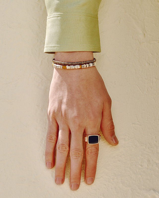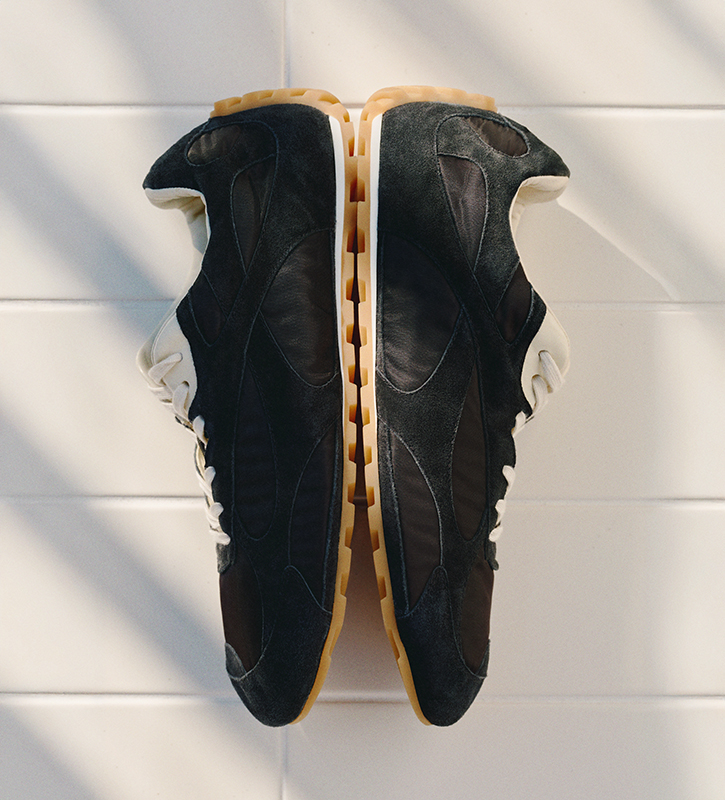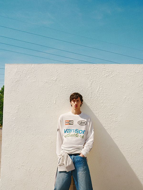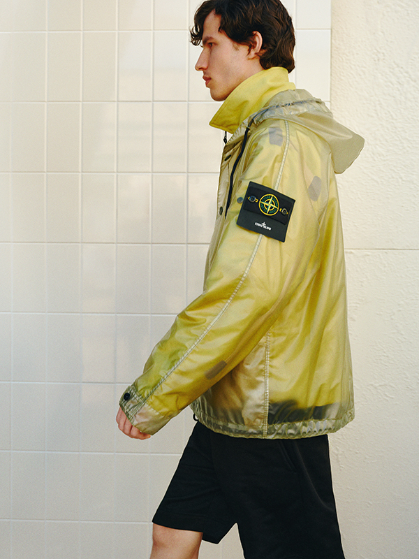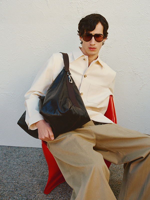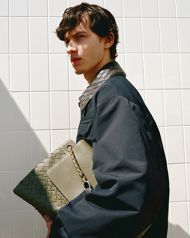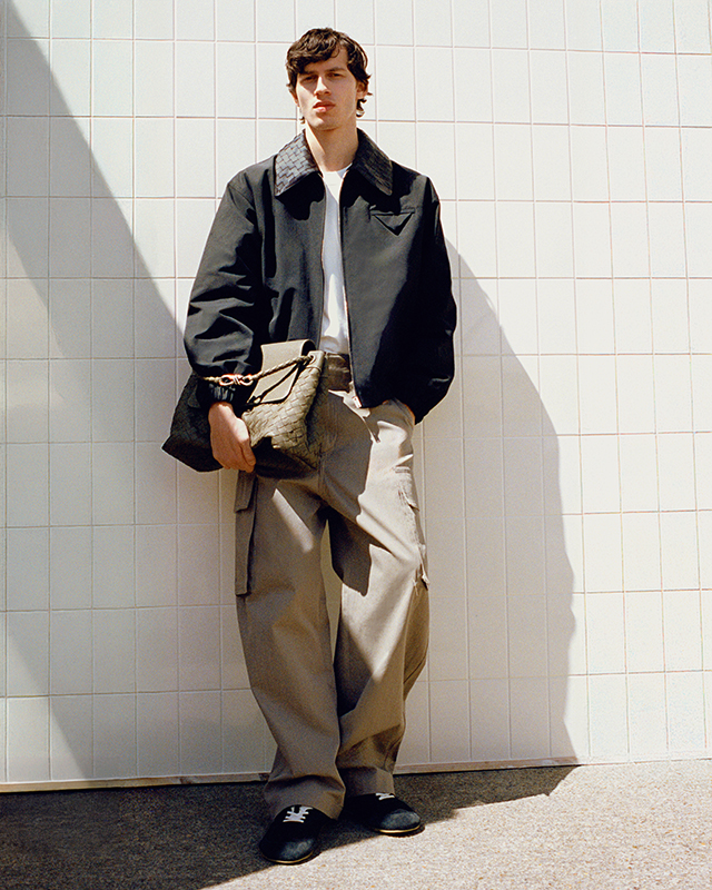 Campaign highlights include laid-back denim from Brunello Cucinelli, relaxed shirting from AGOLDE and graphic tees from Cherry Los Angeles – perfect for when the sun begins to dip. Layering takes centre stage as we edge towards autumn: look to Stone Island’s translucent cotton moleskin anorak for a technical twist, or the wool-linen blazer from Maison Margiela for elevated late-summer style. Bottega Veneta showcases its signature intrecciato detailing through a canvas jacket, cotton-jersey tee and iconic messenger bag, offering a tactile edge to relaxed silhouettes.