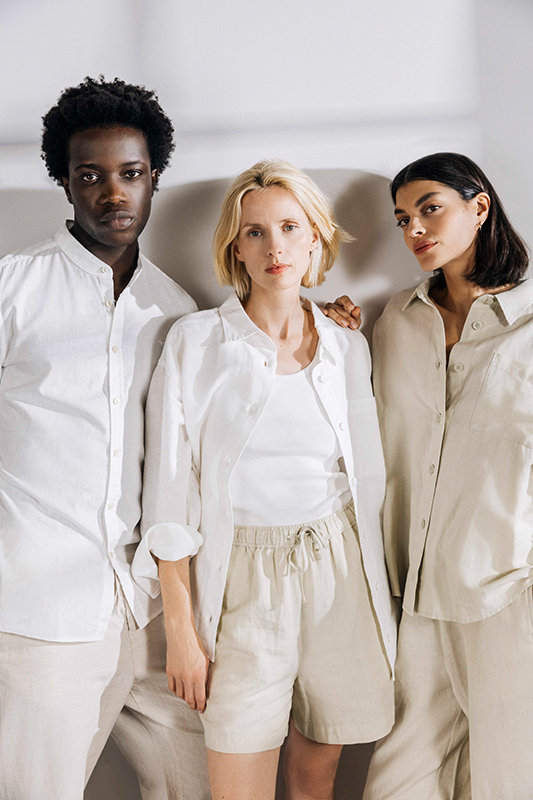 Mustang linen styles come in a harmonious, nature-based color palette that includes soft, neutral tones like white and beige. These calm shades can be effortlessly combined, creating a harmonious blend of elegance and casualness. Earthy colors like khaki and olive add vibrant, fresh accents and lend the collection additional charm.