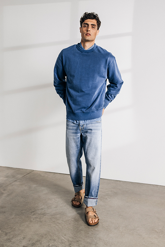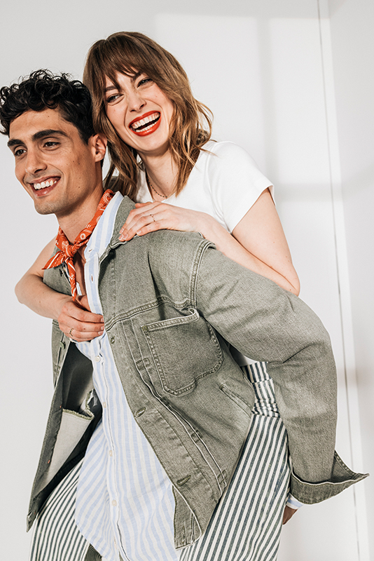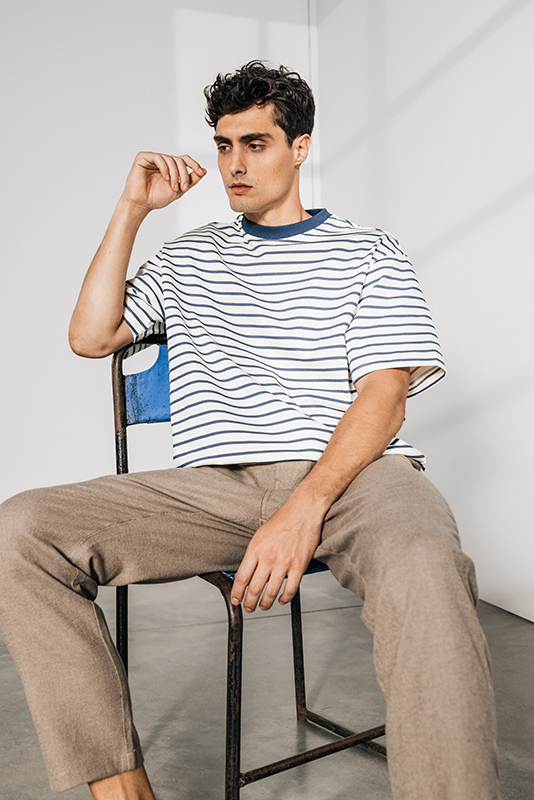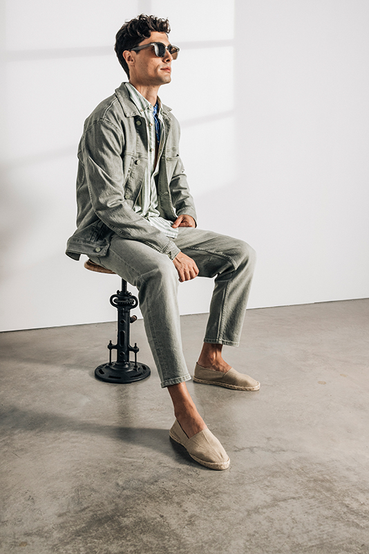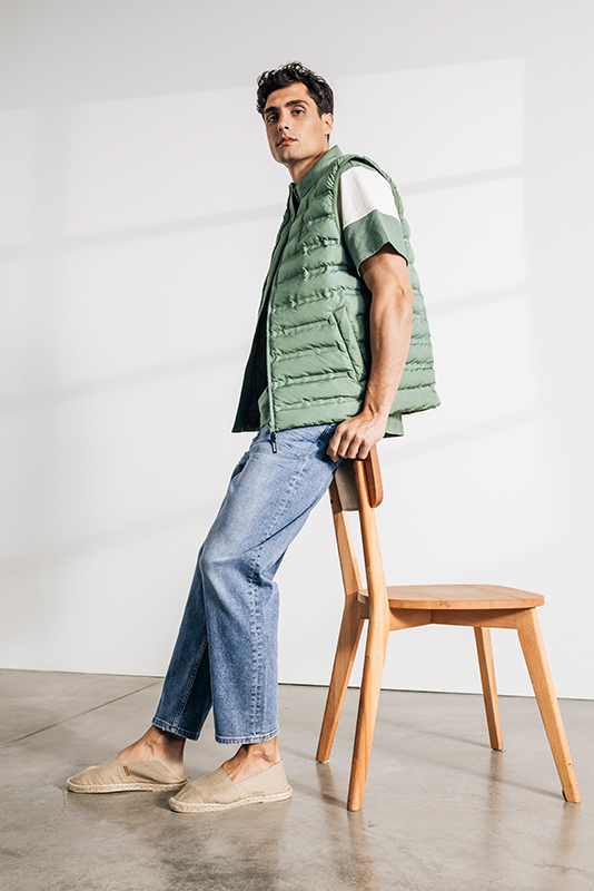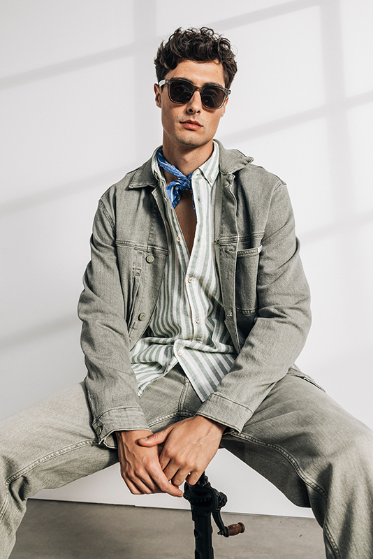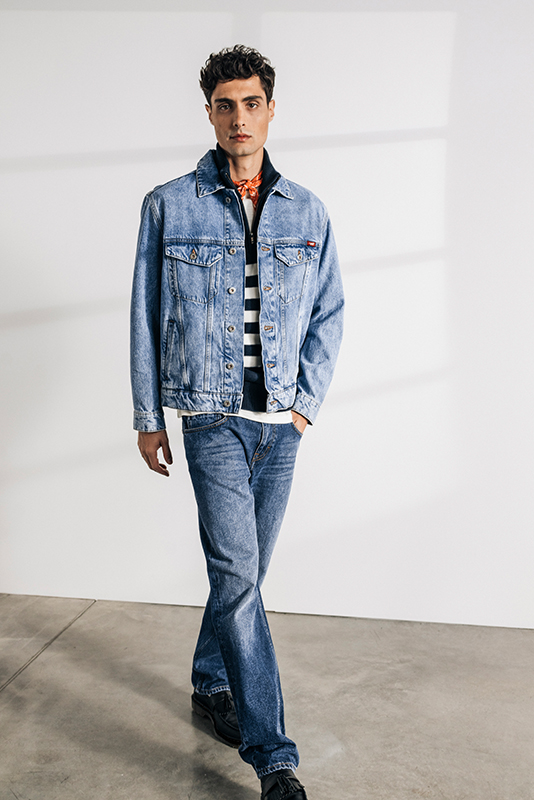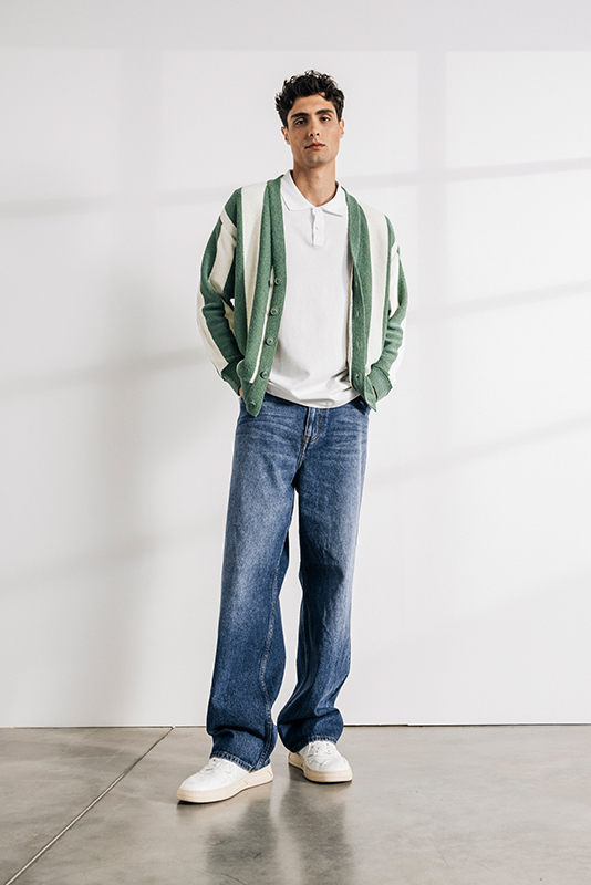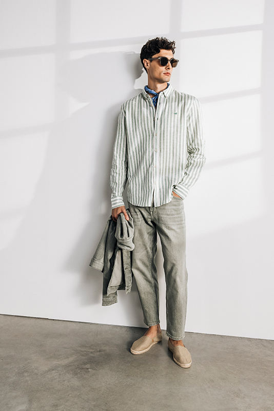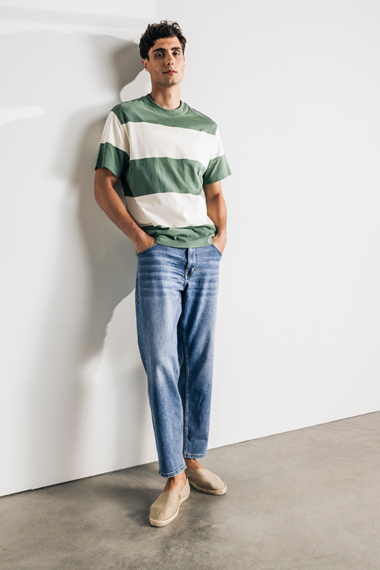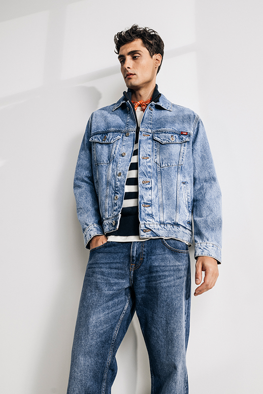 For the coming spring, Mustang has been inspired by the relaxed lifestyle of the French south coast for menswear – with the unmistakable vibes of the famous beach clubs, trendy bars and the typical sound of the French music scene. The focus is on functional lightness, loose oversized fits and organic prints, complemented by eye-catching striped patterns in all variations – whether horizontal or vertical. The focus of the key looks: an exclusive jeans capsule made of green denim – based on an iconic Mustang campaign from the 70s and reinterpreted in a modern way. A highlight is the sustainable labeling with Jacron patches as well as the innovative, embroidered rivets made of environmentally friendly yarn, which replace classic metal rivets. The collection is complemented by versatile denim pieces, light knitwear in a variety of structures and shirts with short and long sleeves in different feels.