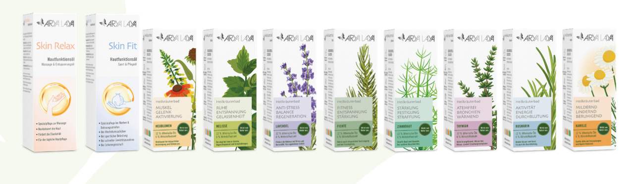 Die Heidelberger Naturkosmetikmanufaktur ARYA LAYA stellt acht Heilkräuterbäder zur ganzheitlichen Entspannung und revitalisierenden Pflege vor. Alle acht ARYA LAYA Heilkräuterbäder enthalten 12 % reine ätherische Öle und 6 % wertvolle Pflanzenextrakte – damit gehören sie zu den intensivsten Badezusätzen auf dem Markt. Sie bieten die Aromatherapie für zu Hause. Die hohe Konzentration ätherischer Öle entfaltet beim Baden ein intensives, naturreines Dufterlebnis mit Wirkeffekt. ARYA LAYA verbindet das Wissen um die Kraft reiner ätherischer Öle mit natürlichen Extrakten der jeweiligen Heilpflanzen zu Heilkräuterbädern mit wohltuenden Düften für ein luxuriöses Badeerlebnis. Sie laden dazu ein, im hektischen Alltag einen Moment der Ruhe zu finden und neue Energie zu schöpfen – ganz im Zeichen von Schönheit, Gesundheit, Entspannung und Wohlbefinden. ARYA LAYA produziert 100 % kontrollierte Naturkosmetik – frei von synthetischen Duft-, Farb- und Konservierungsstoffen nach den strengen Richtlinien des neuform®-Qualitätssiegels.