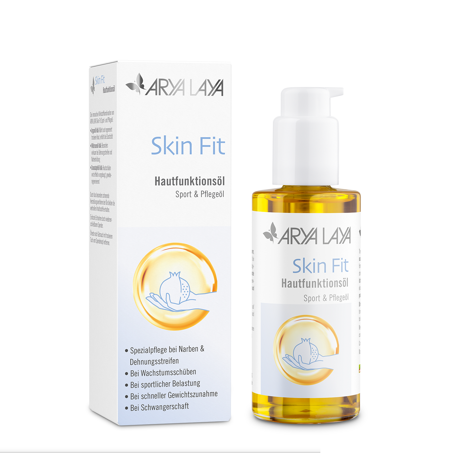 Das Skin Fit Hautfunktionsöl Sport & Pflegeöl regeneriert und stärkt beanspruchte Haut. Mit seiner aktiven Formulierung aus kostbaren, natürlichen Ölen wie Arganöl, Wildrosenöl und Granatapfelöl – alle in Bioqualität – beruhigt das Öl juckende Haut, glättet sie spürbar und unterstützt die Elastizität des Bindegewebes. Es hilft, das Erscheinungsbild von Narben zu verbessern und beugt bei regelmäßiger Anwendung Dehnungsstreifen vor: in der Schwangerschaft, in Wachstumsphasen, bei sportlicher Anstrengung und bei Gewichtszunahme. Ein frisch fruchtiger Duft von Mandarine und Lavendel lenkt die Sinne in einen Moment der Leichtigkeit. Regelmäßig ein bis zweimal täglich auf die noch feuchte Haut auftragen und einmassieren. Bei der Pflege von Narben darauf achten, dass die Wundheilung abgeschlossen ist. Das Skin Fit Hautfunktionsöl eignet sich perfekt als belebende Morgenroutine oder zur Regeneration nach sportlicher Aktivität.