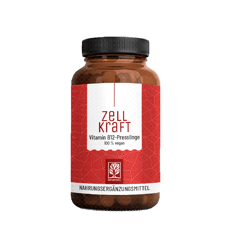 Dabei kombiniert ZELLKRAFT mit Adenosylcobalamin (aktive Form in den Mitochondrien) und Methyl-cobalamin (aktive Form im Blutplasma), gleich zwei bioaktive Formen von Vitamin B12, um eine optimale Bioverfügbarkeit zu erreichen und den Organismus ganzheitlich zu versorgen. Mit nur einem Pressling deckt ZELLKRAFT den von der DGE festgelegten Tagesbedarf an Vitamin B12. Und das Beste: Mit 270 Presslingen ist ZELLKRAFT ein echter Langzeitvorrat für bis zu 9 Monate.