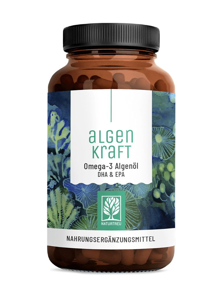 ALGENKRAFT liefert hochwertiges und vor allem rein pflanzliches Omega-3 aus Algenöl, der ursprünglichen Quelle von DHA und EPA. Der große Vorteil von Algenöl: Es ist nachhaltig, umweltschonend und frei von Schadstoffbelastungen. Außerdem ist es ideal für vegane und vegetarische Ernährungsstile – ohne Kompromisse bei Qualität oder Wirkung.