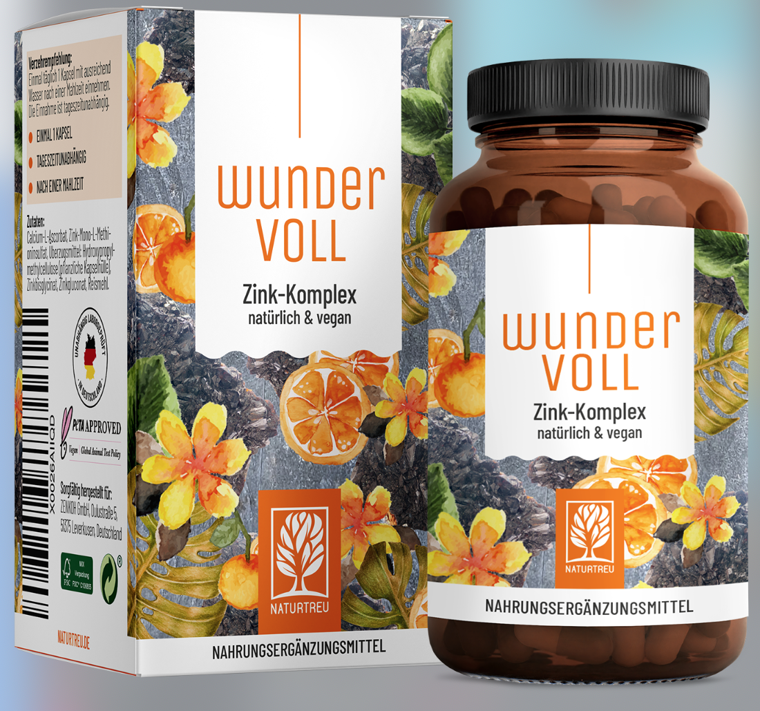 Der Zink-Komplex WUNDERVOLL soll unser Immunsystem unterstützen und so die Immunabwehr verbessern. Außerdem kann er zur Zell- sowie Hautgesundheit beitragen