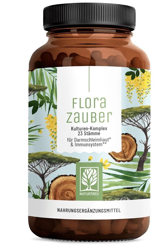 Dank einer besonders hohen Konzentration an lebendigen Bakterienkulturen aus 23 Bak-terienstämmen trägt der Kulturen-Komplex FLORAZAUBER dazu bei, das Mikrobion auszugleichen und zu stärken. Gleichzeitig soll die Darmschleimhaut vor dem Eindringen von Erregern geschützt werden.