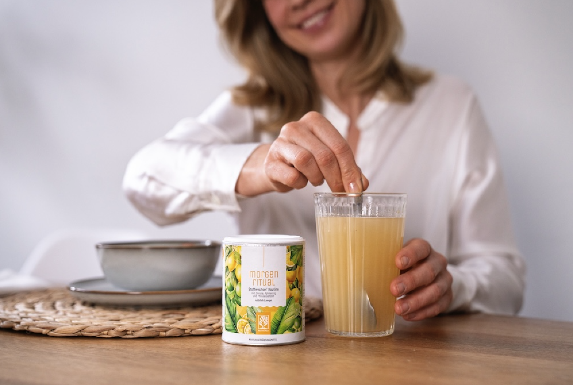 Ein sanfter Stoffwechsel-Boost zum Start in den Tag: MORGENRITUAL vereint die Benefits von Zitronenwasser, Ingwer und Apfelessig in einem Präparat in Pulverform. Neben verschiedenen hochwertigen Pflanzenstoffen enthält MORGENRITUAL wertvolles Vitamin C, um die körpereigenen Reserven aufzufüllen.