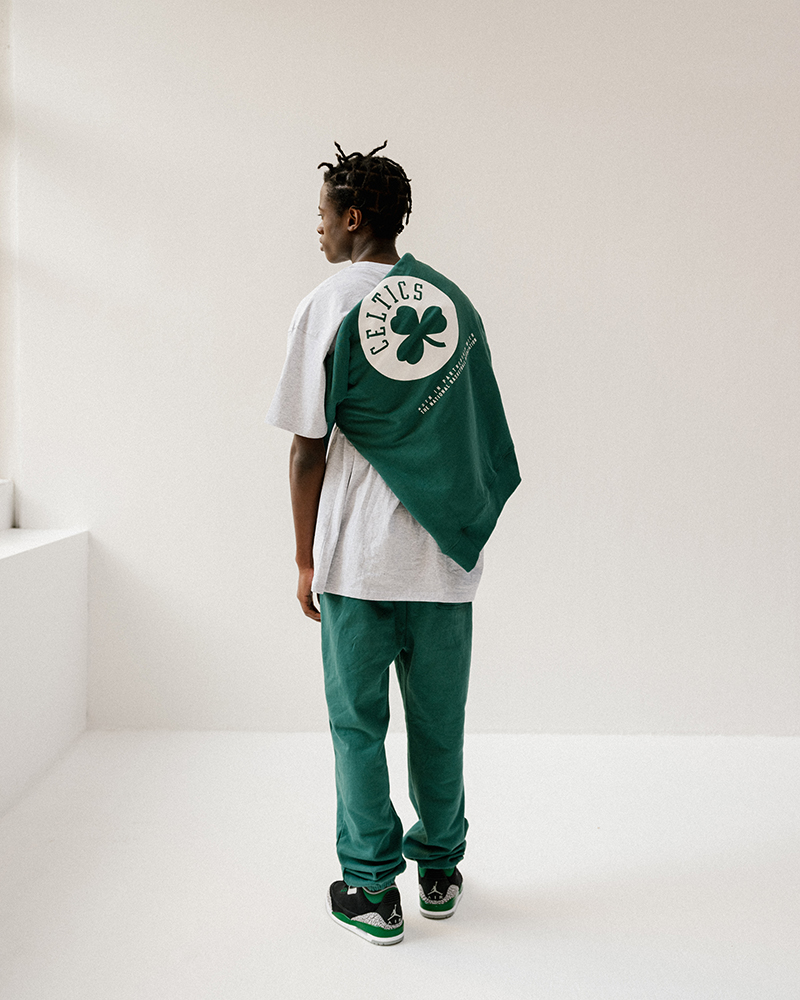 A variety of t-shirts, crewnecks, hoodies and sweatpants made from high-quality cotton dedicated to each team will be available offering fans a sophisticated take on their teams. In addition, the capsule will include three unique cut-and-sew corduroy shorts and a two-piece all-over debossed logo velour track suit that combines off-court appeal with every-day comfort. There will also be five knitwear items made in Germany from 100% merino wool by ‘A Kind Of Guise’.