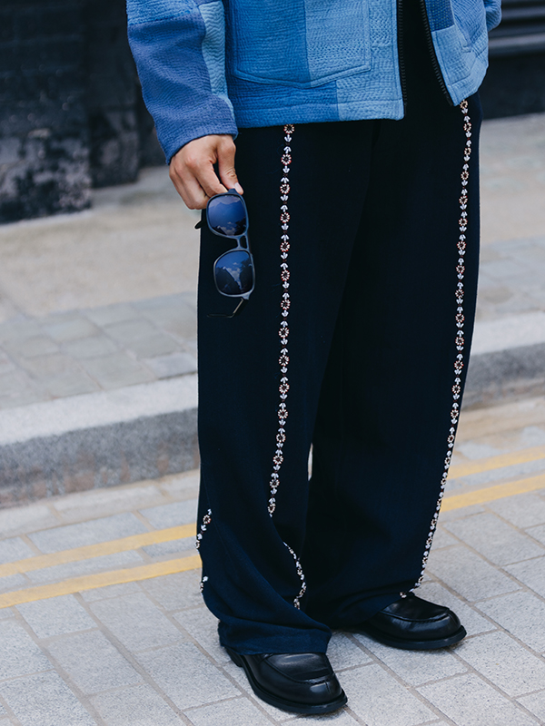 Founded by Kartik Kumra in 2021, Kartik Research works closely with Indian artisans to create clothing inspired by local style. A celebration of cultural heritage, each garment is handmade in limited quantities using centuries-old craft techniques. Kartik Research launches an exclusive nine-piece collection featuring a handloomed suit alongside jackets and shirts with hand-embroidered details.