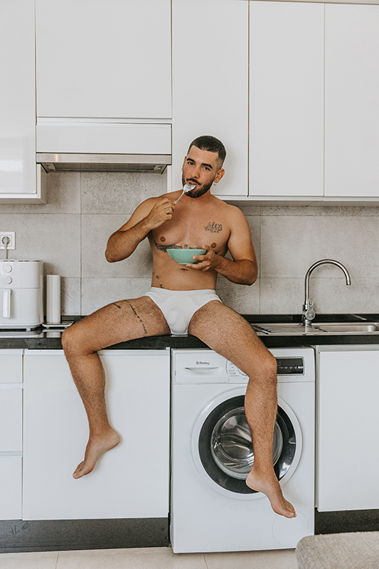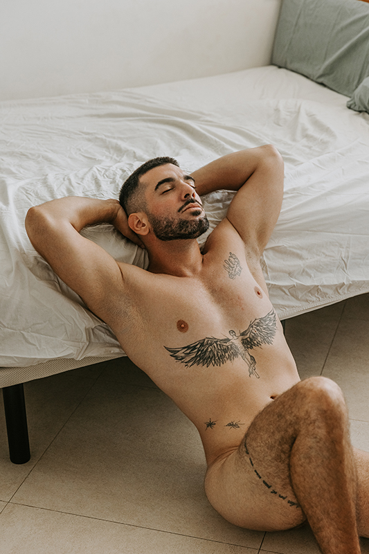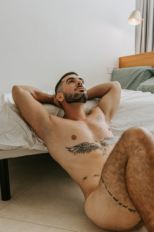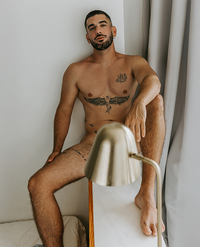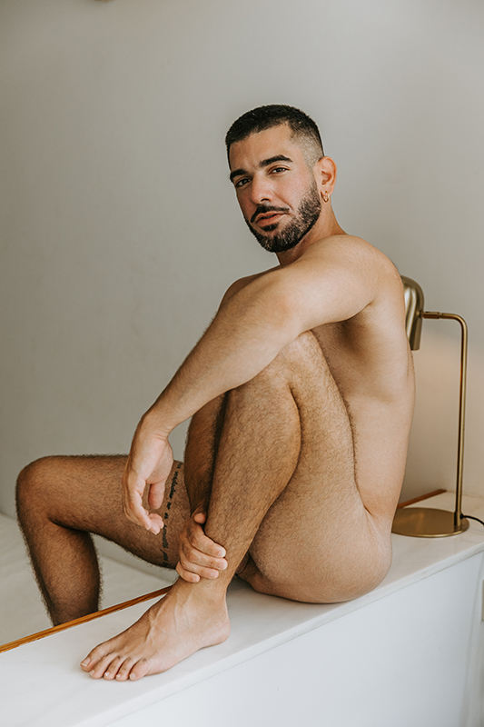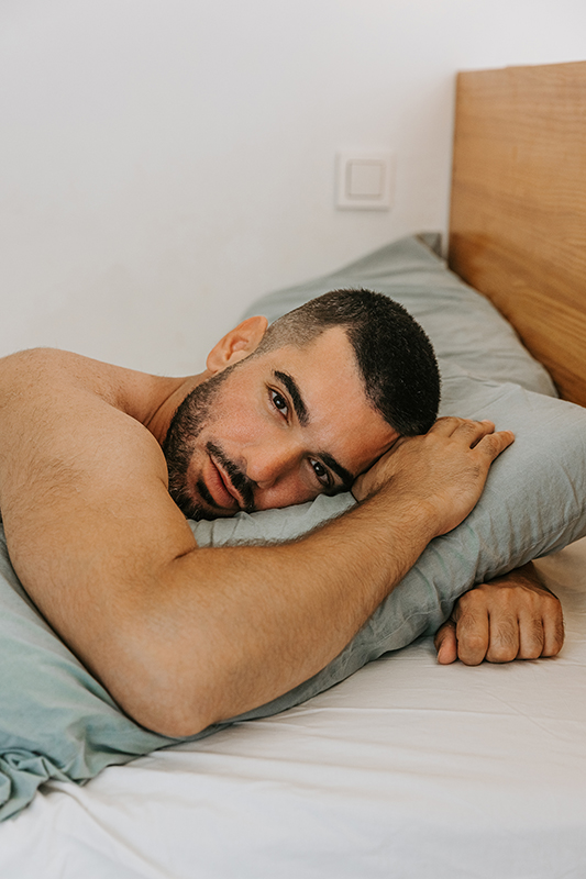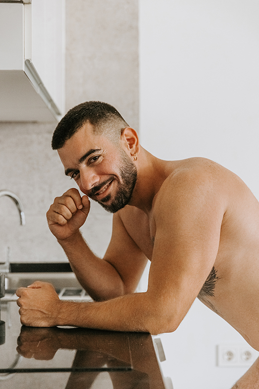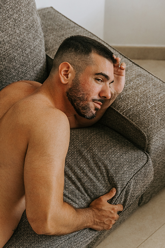 This is a moody, atmospheric shoot of a beautiful young man at his home — intimate, natural, and full of character