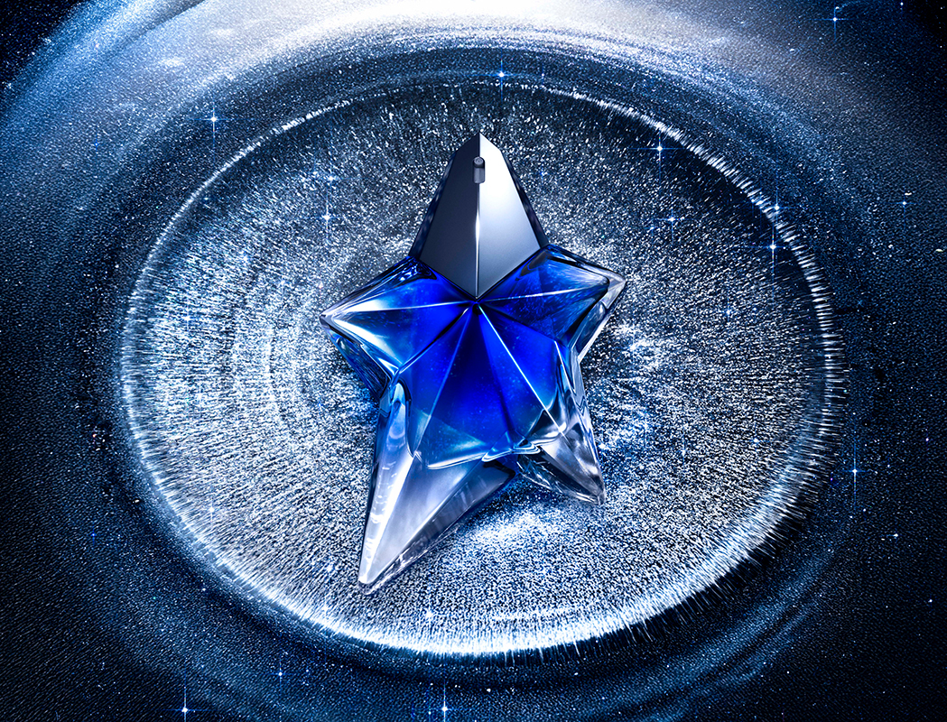 Magnetizing and magnificent, with a light-filled delicacy. ANGEL STELLAR Eau de Parfum Lumineuse, the brightest star in Mugler’s glittering galaxy, fascinates with its contrasts: intoxicatingly sensual, incredibly delicate, and as multifaceted as its iconic star-shaped bottle. The ethereal blue shimmering fragrance enchants with its heavenly facet, like breathing soft, fresh air; its lustfully delicious facet instantly revives childhood memories to be enjoyed anew in the here and now. As a tribute to Mugler’s signature style, powerful patchouli contributes an overwhelmingly sensual facet – the pure essence of ultimate femininity.