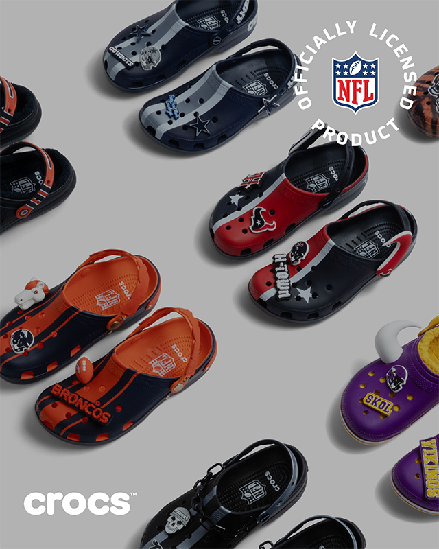 The National Football League (NFL) and iconic comfort footwear brand Crocs today announced a multi-year licensing agreement that brings a new design perspective to the fan experience: the first-ever NFL x Crocs Collection. Offering fans worldwide a truly comfortable experience, the collection features team-inspired footwear and Jibbitz™ charms that reflect the passion and personality of NFL team fans.