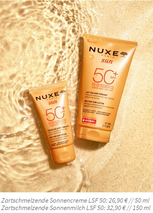 Warm summer days and sun-kissed skin are fast approaching – NUXE is now launching divine sun care innovations that combine effective protection, maximum safety, and exceptional sensuality: The new highly effective Huile Solaire Or sun oil makes the skin glow thanks to 100% natural shimmer particles and delicate, iridescent golden reflections. The melt-in-the-mouth sunscreen and sun lotion can be applied to the face and body like an invisible finish, offering waterproof protection and a natural anti-aging effect. For sensual sun protection and a uniquely soft skin feeling.