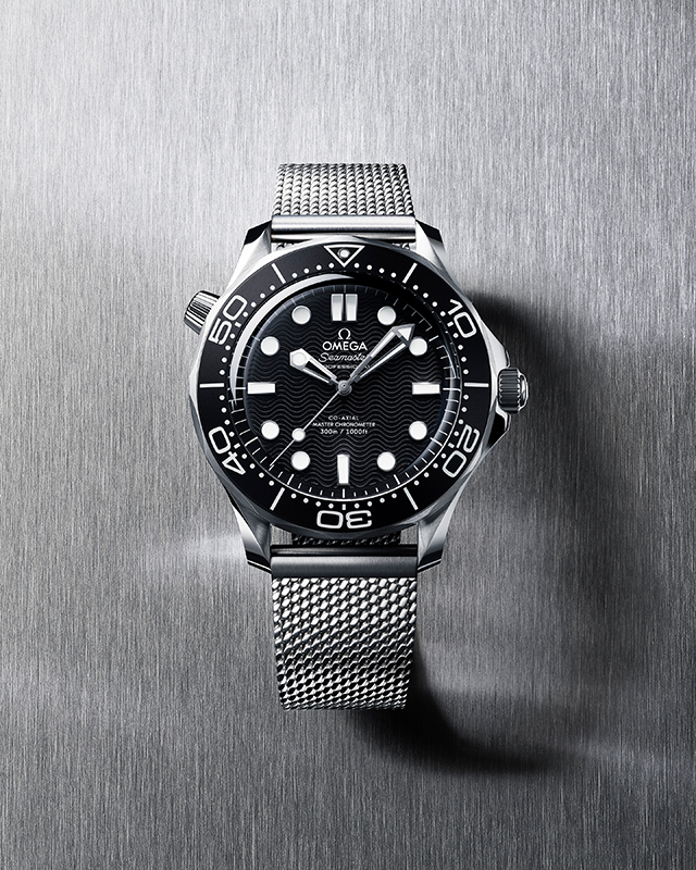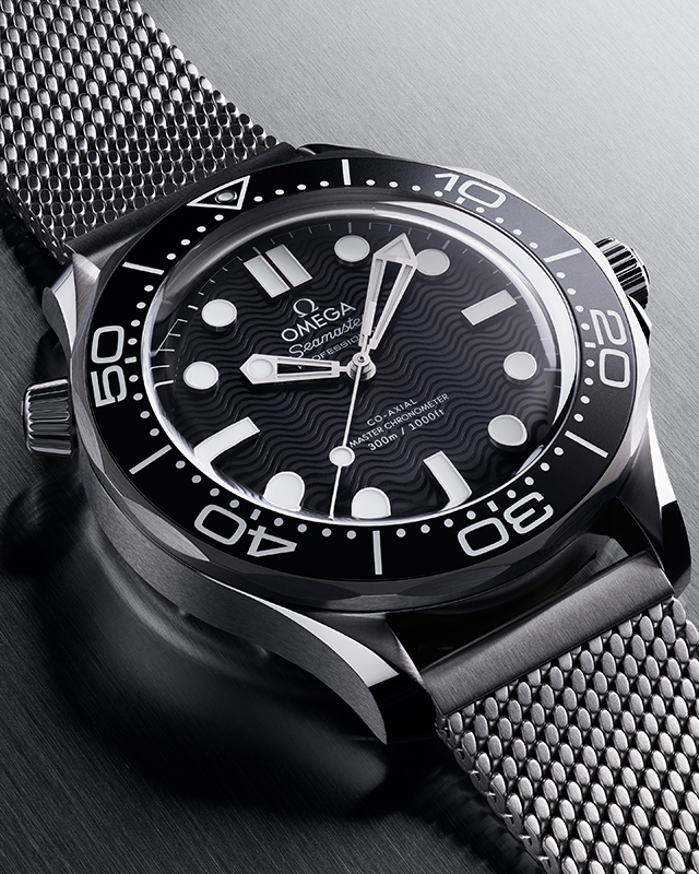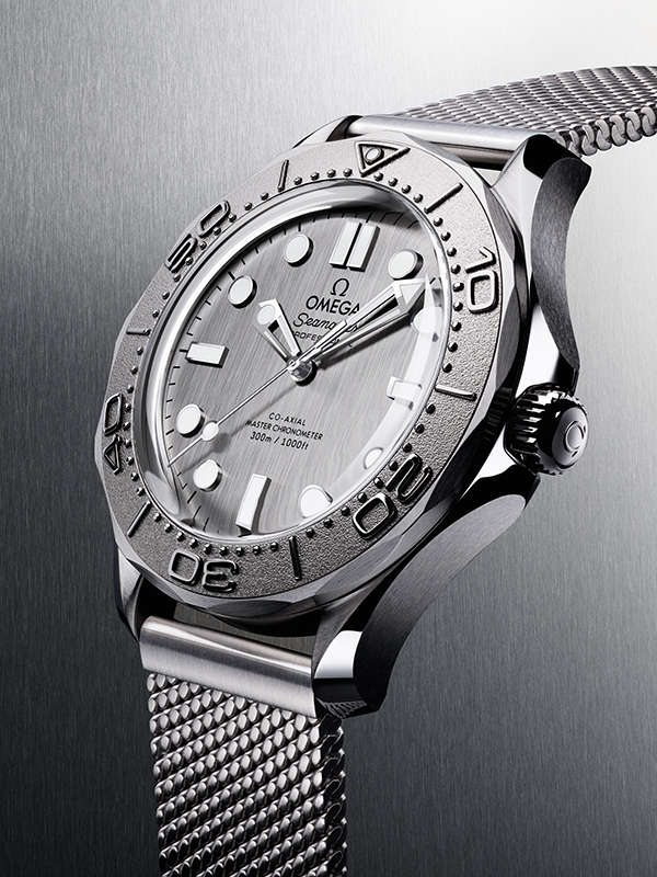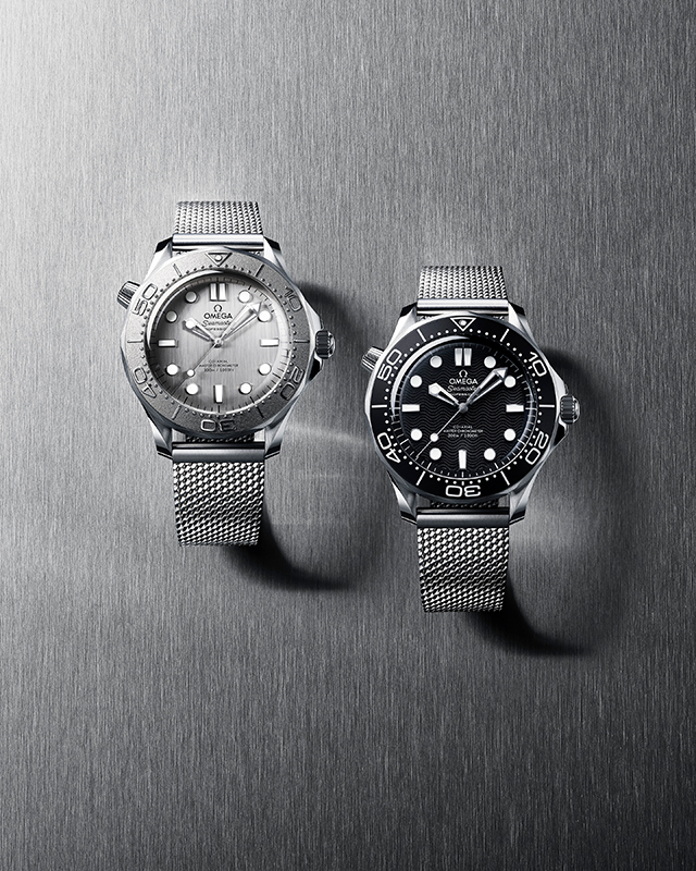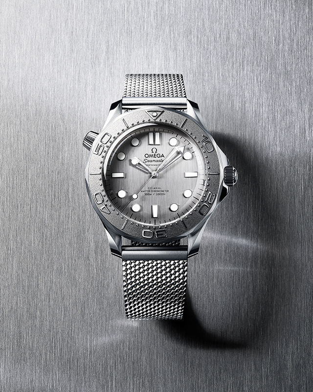 The new Diver 300M series moves away from the familiar ceramic style of previous years – and instead takes inspiration from the Seamaster Diver 300M 007 Edition that James Bond wore in No Time to Die. In particular, the new 42mm models feature the same domed sapphire crystal as the watch in the James Bond film, giving them a certain vintage aesthetic. The Milanese bracelets adopt the same style as the Bond watch and provide a sporty look on the wrist.
