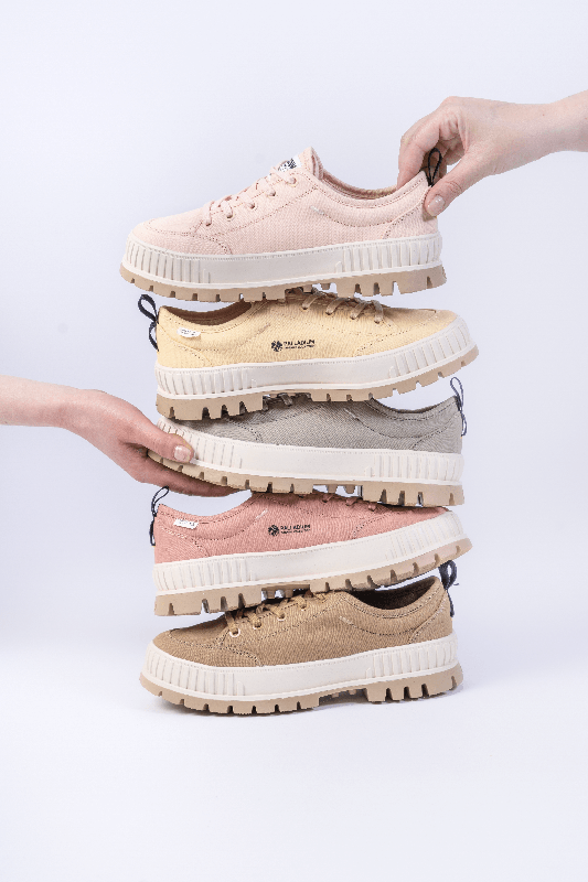The Pallashock Org is inspired by the workwear style of the early 1990s. This shoe brings style from Palladium’s archives to new urban living spaces. A fusion of sneaker and boot, the lo-cut version brings a chunky aesthetic without the added weight. Palladium takes a step in the right direction with this collection and uses recycled materials for the rubber sole, inner lining and insole. The upper material of this collection is made of organic cotton canvas. The Pallashock Lo Organic is available this season in nine color options – including Yellow Créme, Sahara and Eucalyptus.