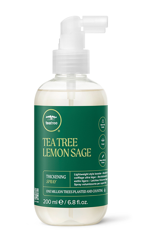 4. Tea Tree Lemon Sage Thickening Spray auf den Haaransatz aufsprühen und Tea Tree Hemp Multitasking Spray für Längen und Spitzen verwenden.