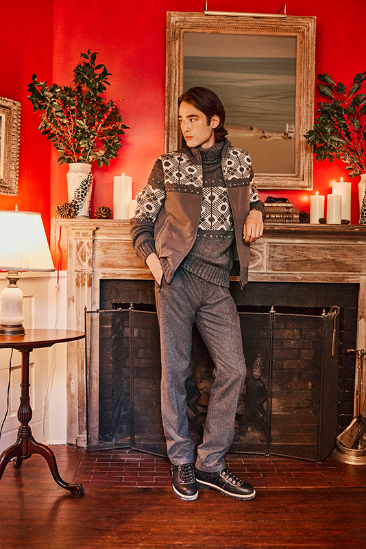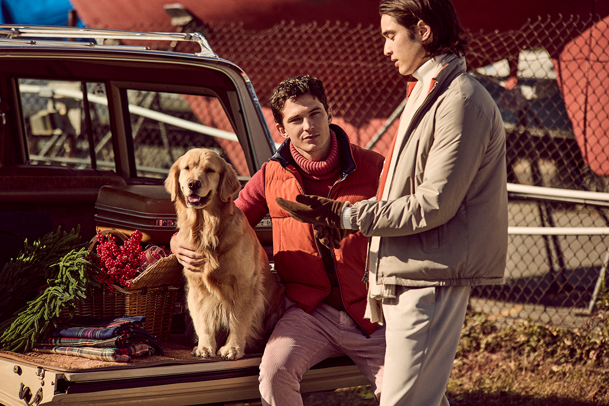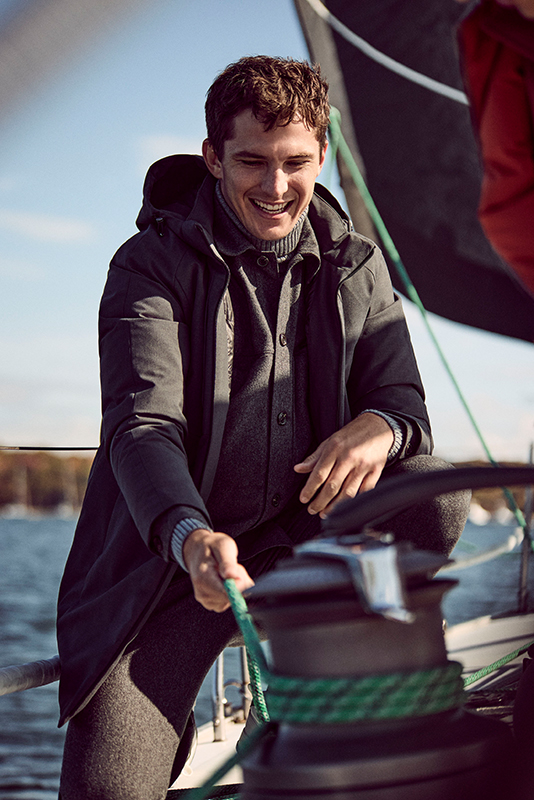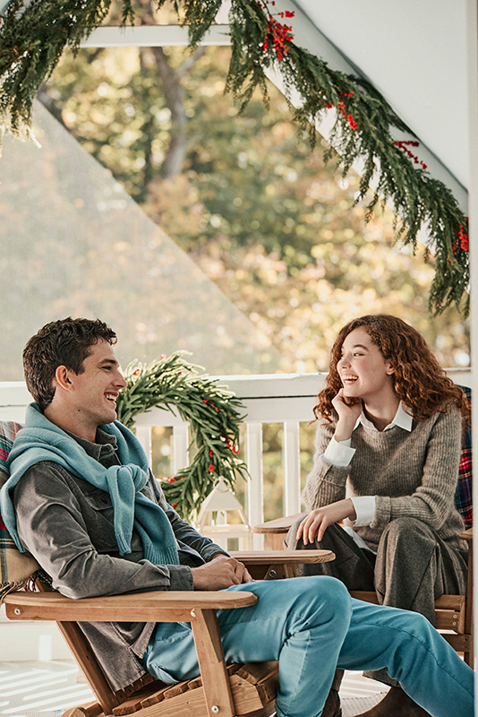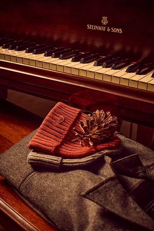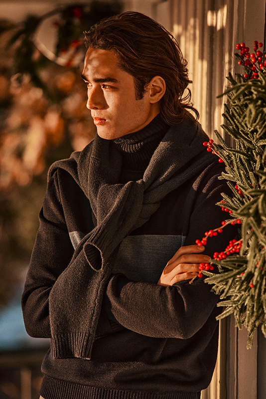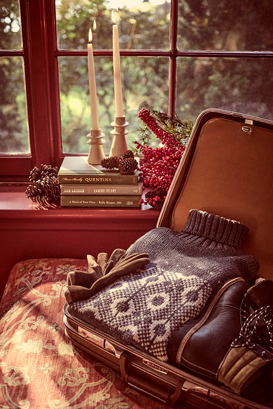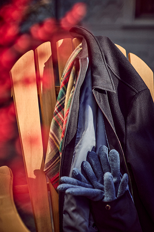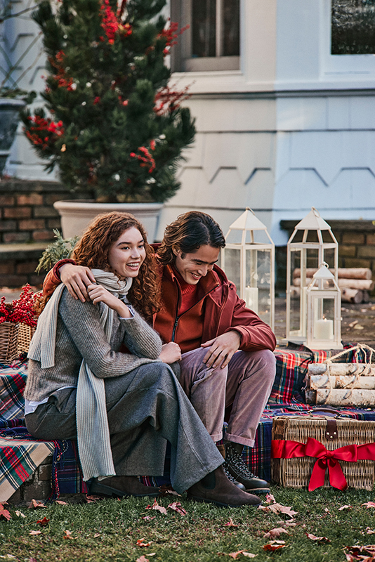Warm, inviting tones, the scent of pine and spices, the crackling fire, and the sparkle of decorations—every detail of the Holiday Season collection is a tribute to the senses: soft velvets, garment-dyed sweaters, and the technical Typhoon fabric come together to see you through the most precious moments of the holidays.