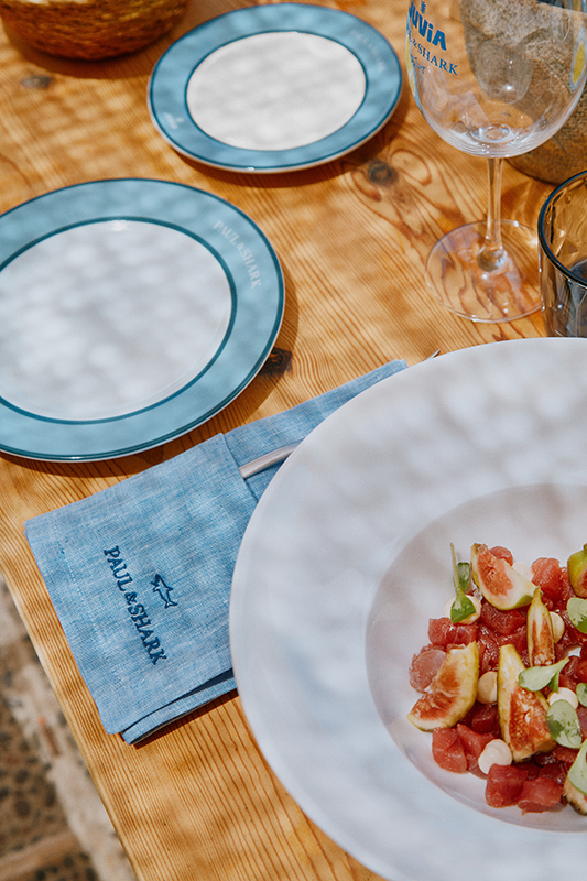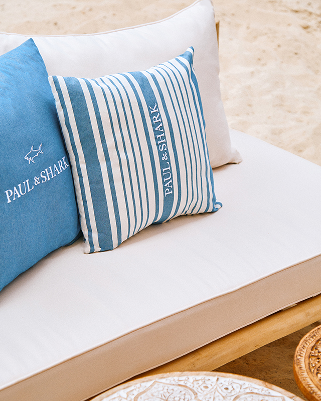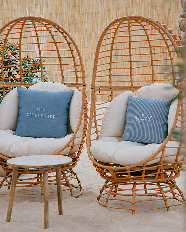 With everything designed by Paul & Shark, the spacious outdoor area overlooking the sea offers a minimalist-chic setting to welcome guests. From the set-up to the chairs, cotton cushions and welcome flag: this brand oasis won’t go unnoticed.
