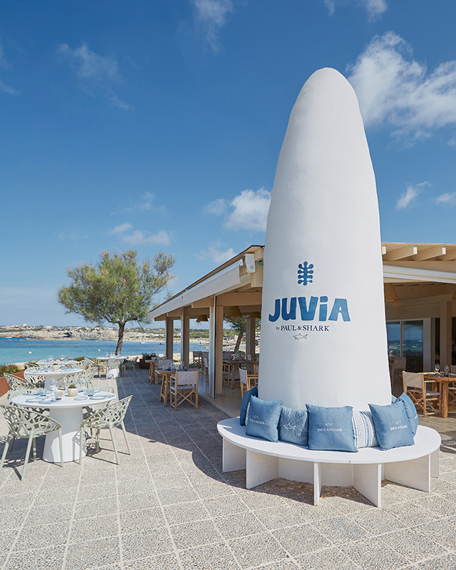 Continuing with the custom summer projects it began in 2023, Paul & Shark is teaming up with Juvia, a stylish restaurant at the heart of Es Pujols, which overlooks the island’s crystal-clear waters. A place suspended in time, a faraway oasis where the brand and environment can go hand in hand.