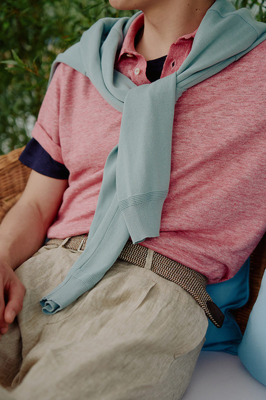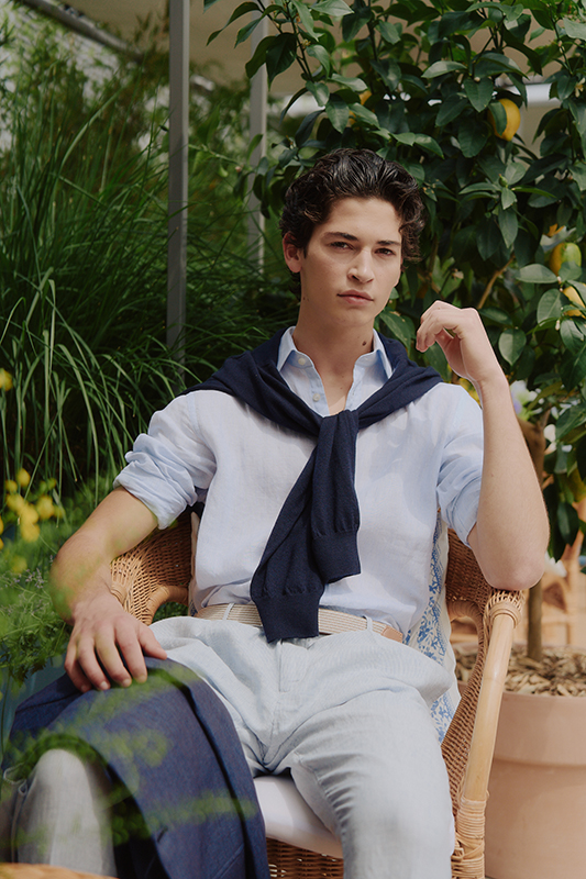 A minimal chic collection, in which great attention has been paid to the materials, details and colors. Swim shorts in ultra-light, quick-drying fabric are paired with silk polo shirts and soft colorful linen shirts. The print made with Liberty of London stands out within the collection, featuring a still image of Capri, with the island depicted with its winding streets, blooming bougainvillea, historic buildings and the little boats of the local fishermen. The details are sharp, like paintings created with brushstrokes of light and shade, which capture the very essence of the island.