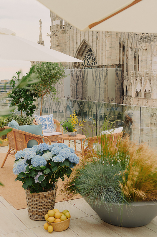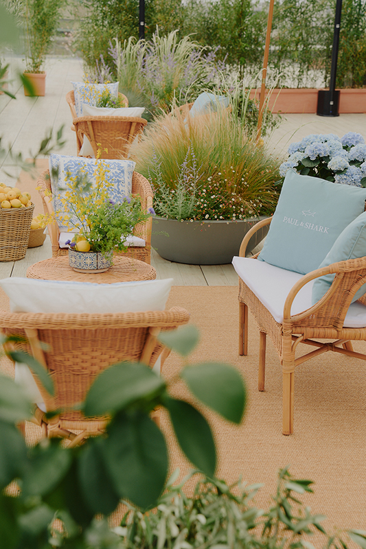 It’s a Saturday when summer is almost upon us. The sun is heating up the city. Amidst the hustle and bustle of tourists crowding the streets of central Milan, trees laden with fragrant lemons point the way to the Terrazza Duomo, which has been transformed for the occasion by Paul & Shark into a glimpse of the island of Capri in the vibrant heart of the city: a taste of summer. A quintessential Italian escape. An enchanted terrace, suspended between sky and sea.