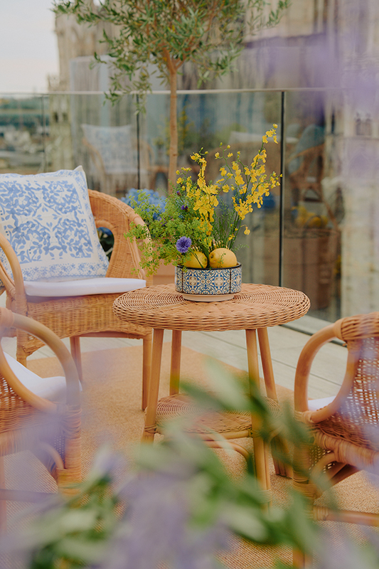 Guests will be welcomed to this elegant corner of paradise crafted by the brand by white and azure majolica tiles, blue striped textures on furnishings, and prints and shades that celebrate the harmonious fusion between the identity of the island of Capri and Paul & Shark’s style. The spiers of Milan’s Duomo can be admired from the terrace and alternate with the Mediterranean Sea, which disappears on the horizon: half-closing their eyes and sinking into the wicker sofas in the lounge area of the terrace, guests can imagine the gentle yet powerful sound of the waves as they crash on the sea stacks.