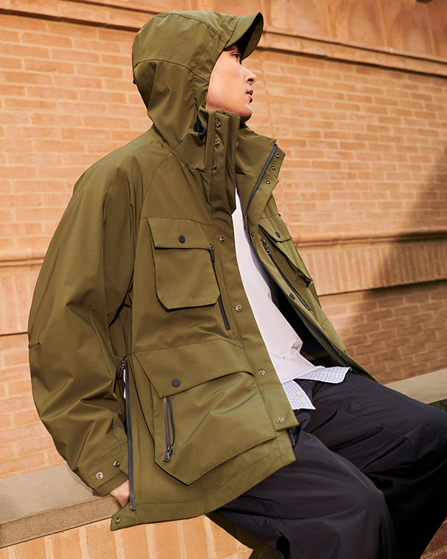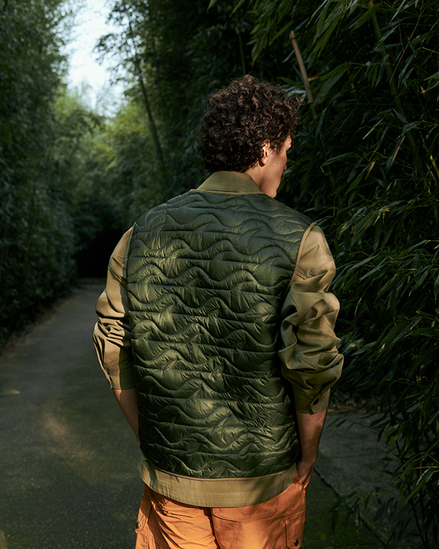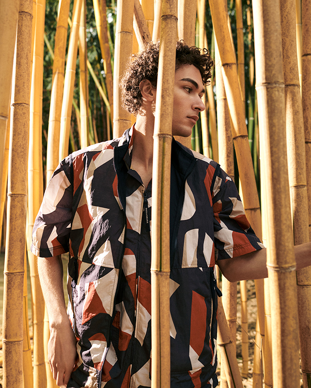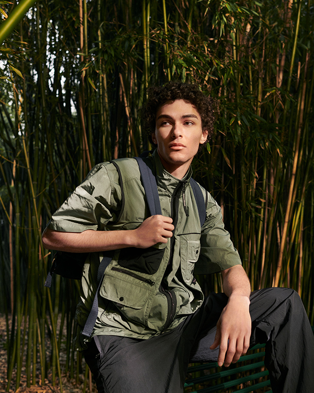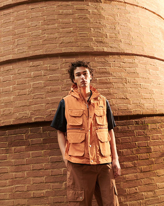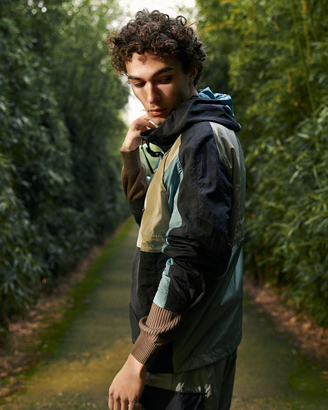 The jackets, sweatshirts and trousers boast unexpectedly proportioned fits, where the lifestyle codes are a nod to urban utility wear. Everything is functional, from the quick-change pockets to the drawstrings and zips. Navy and light blue patchworks, brown and orange camouflage patterns, earth hues and safari shades are thrust into the limelight.
