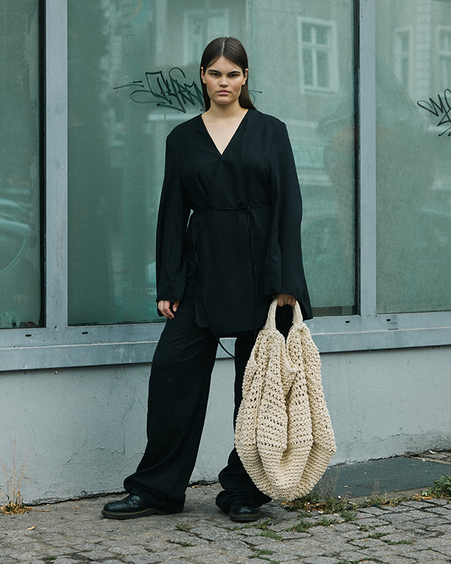 The newest edition embodies our latest effort to eliminate waste and incorporate zero-waste principles into our designs. In this collection, natural materials such as cotton, linen, hemp, and raw silk melt into a selection of high-quality reworked vintage items. Other pieces incorporate deadstock and archive fabrics, re-woven textiles, fabric yarn from recycled T-shirt waste, and certified regional 100% pure new wool. Special pieces in the collection include reworked oversized knitted sweaters, deconstructed and playfully re-knitted with regional wool. Fragments of clothing appear detached, revealing the creative process through unconven- tional solutions like open edges and loose threads.