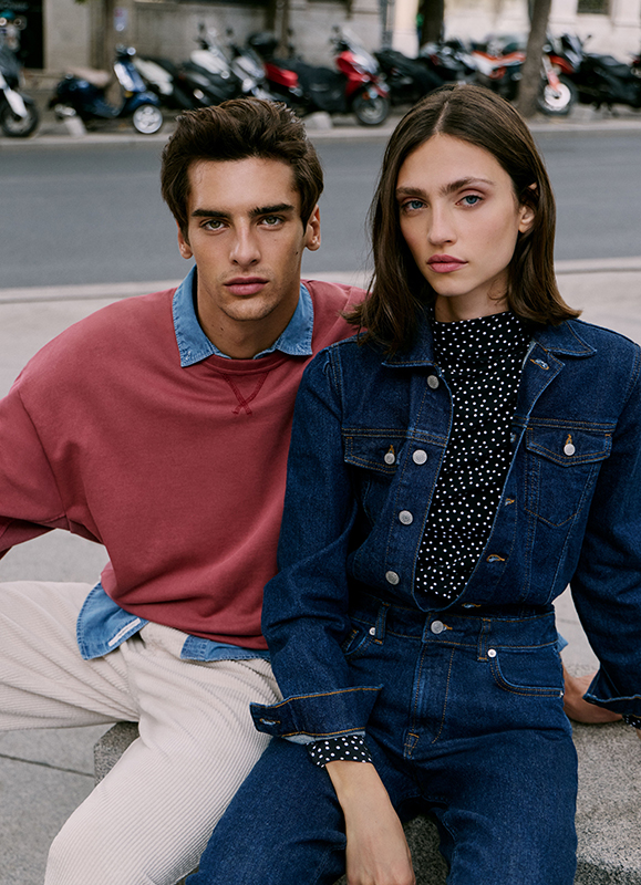 Denim takes center stage, whether as an all-over look, combined with knitwear, or as a clean silhouette, effortlessly wearable all day long.