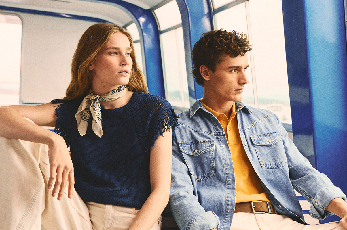 We find ourselves somewhere between the beach promenade and the rhythmic hum of the city, on the go all day. That summer feeling when the days never end. This is denim, reimagined for the heat: softly washed indigo tones and lightweight textures that move as gently as a sea breeze. The looks are effortless and authentic, imbued with freedom, intimacy, and a sense of harmony.