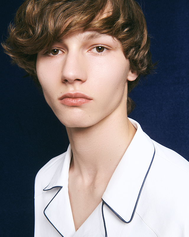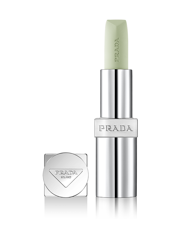 To enhance the lips, Alexander applies Prada Balm to smooth and moisturize lips for a natural, matte finish.