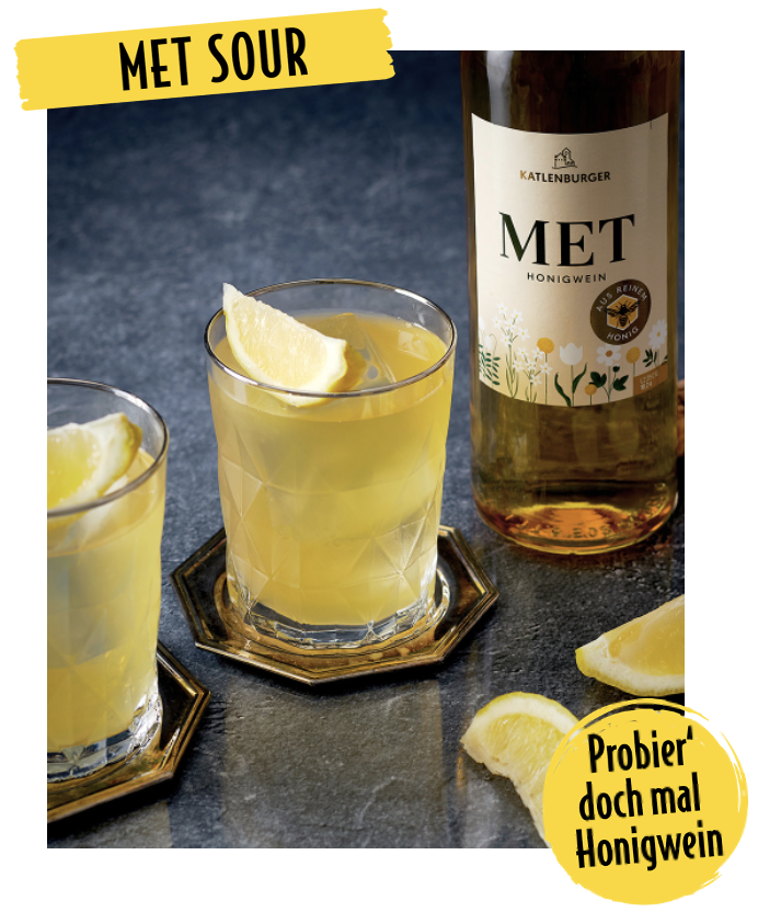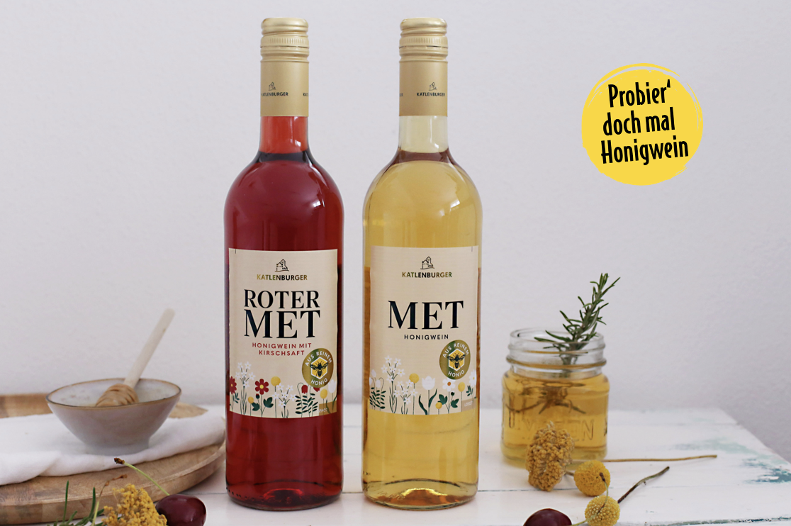 Mit zweierlei Met-Variationen tischt KATLENBURGER in Sachen Honigwein gleich doppelt auf. Mit dem klassischen Met schafft die Kellerei eine moderne Interpretation des geschichtsträchtigen Weingetränks: Seine subtilen Honignoten, die dezente Süße machen den Klassiker zum idealen Begleiter für gemütliche Abende. Im Roten Met kombinieren die Fruchtweinmacher:innen die angenehmen Honignoten mit Kirschsaft und schaffen so eine -fruchtige Symphonie. Ob „on the rocks“ oder als honigsüßer Twist in so manchem Drink-Klassiker – die Honigweine von KATLENBURGER haben das Potential zum absoluten Spätsommer-Hit.