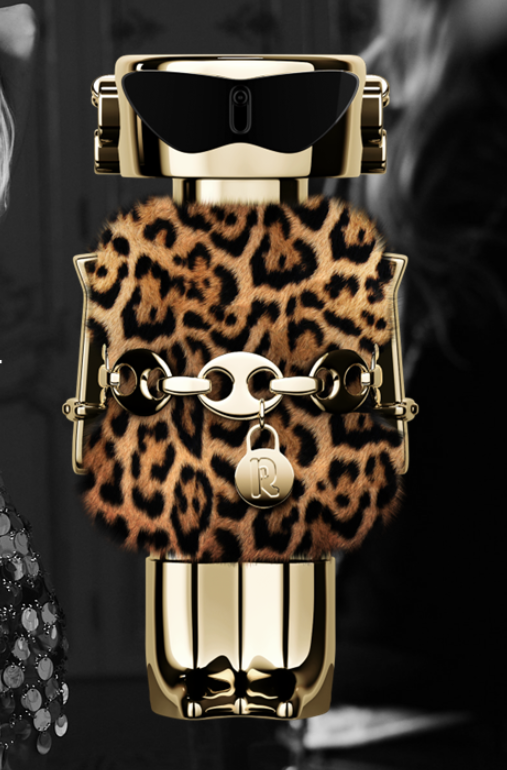 The legendary fragrance in a brand-new runway style: FAME Feline ignites a new universe, its bottle sporting a leopard-print outfit for the holidays. The feline diva, all eyes on her: The new FAME Feline bottle is cinched at the waist with a golden belt made from the iconic Eight jewel – a recurring motif in Rabanne’s fashion heritage, created by Monsieur Rabanne and reinterpreted by Julien Dossena. A precious pendant embellished with the signature Rabanne monogram hangs from the belt.