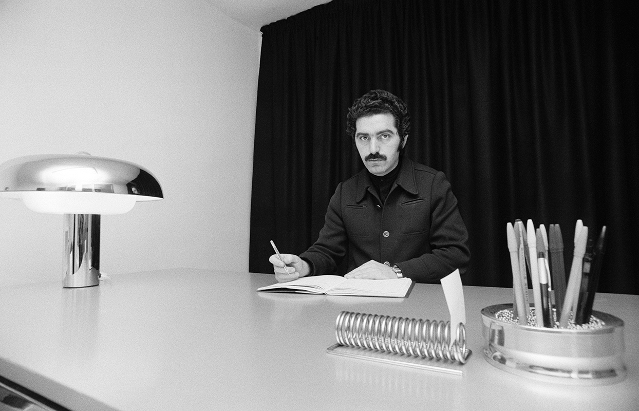 Le couturier Paco Rabanne dans son appartement à Paris en 1974, France. (Photo by Daniel SIMON/Gamma-Rapho via Getty Images)