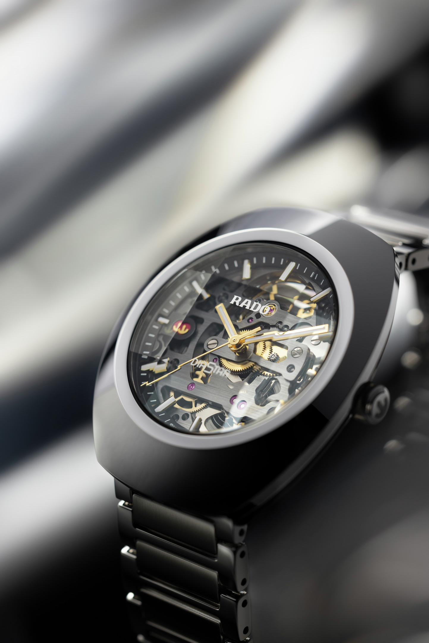 In contrast with other designs of the era, the 1962 DiaStar was a stunning piece of work, breaking new ground. Its unusual and very distinctive shape, its extremely resistant tungsten-carbide case, became signature elements and built the watch a strong following through the decades. The timepiece expressed in the most unequivocal way, the motto of Rado’s founders „If we can imagine it, we can make it. And if we can make it, we will.“ To mark the 60th anniversary of this extraordinary watch, the case saw a change from hardmetal to Rado CeramosTM in 2022, and one might say that the revolutionary watch became an evolutionary icon. The design continued its unrelenting journey and progress in the true spirit of Rado’s quest as Master of Materials.