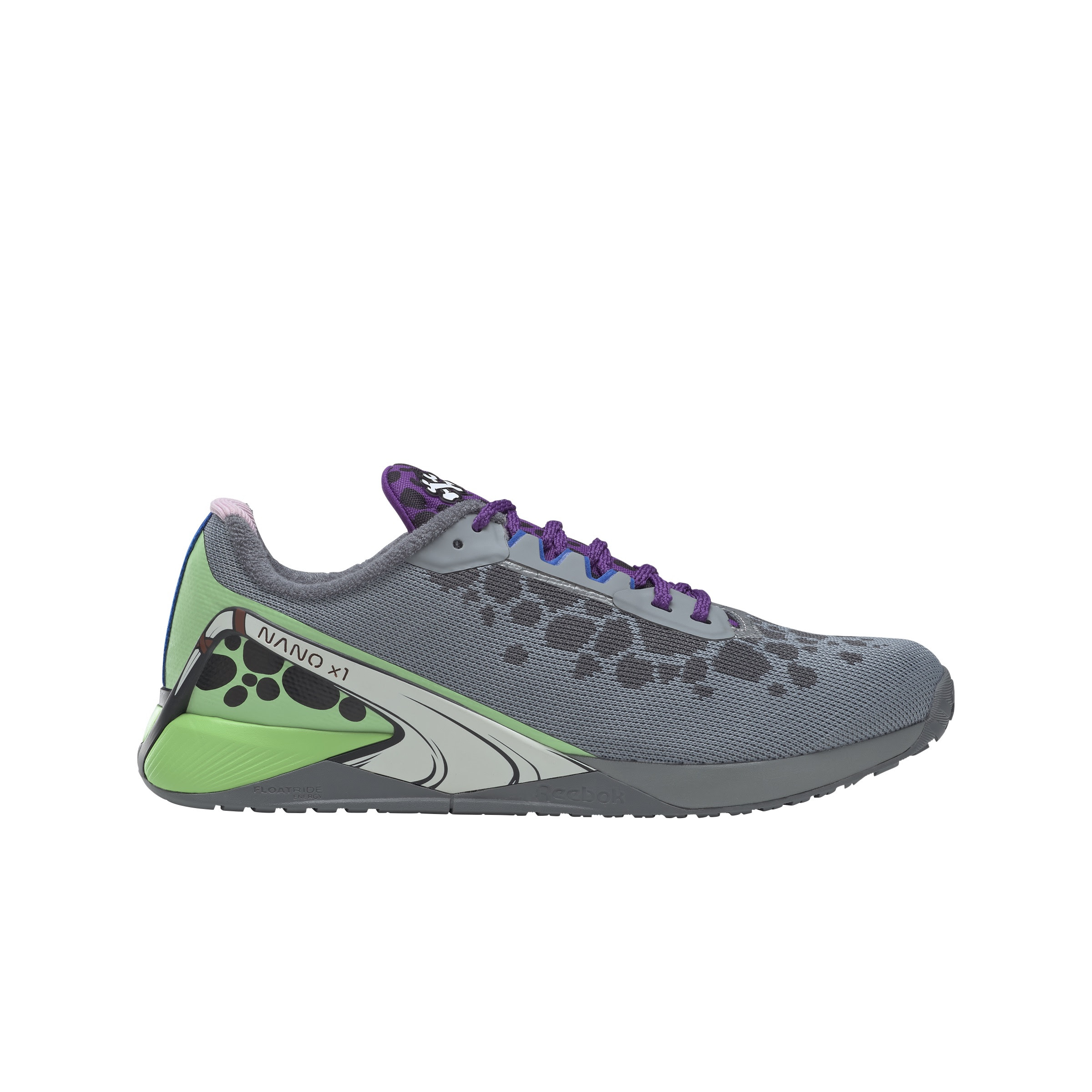 Die Bekleidungslinie umfasst auch Sportbekleidung für Frauen in Form der Lux High-Rise Leggings, des Lux Skinny Strap Sports Bra und der AOP Bike Short von Reebok. Alle drei Kleidungsstücke sind mit einem starken Print versehen, der die Welten der Jetsons und der Familie Feuerstein durch Pflanzen und Umgebungen, die zwischen beiden Welten liegen, zusammenbringt.