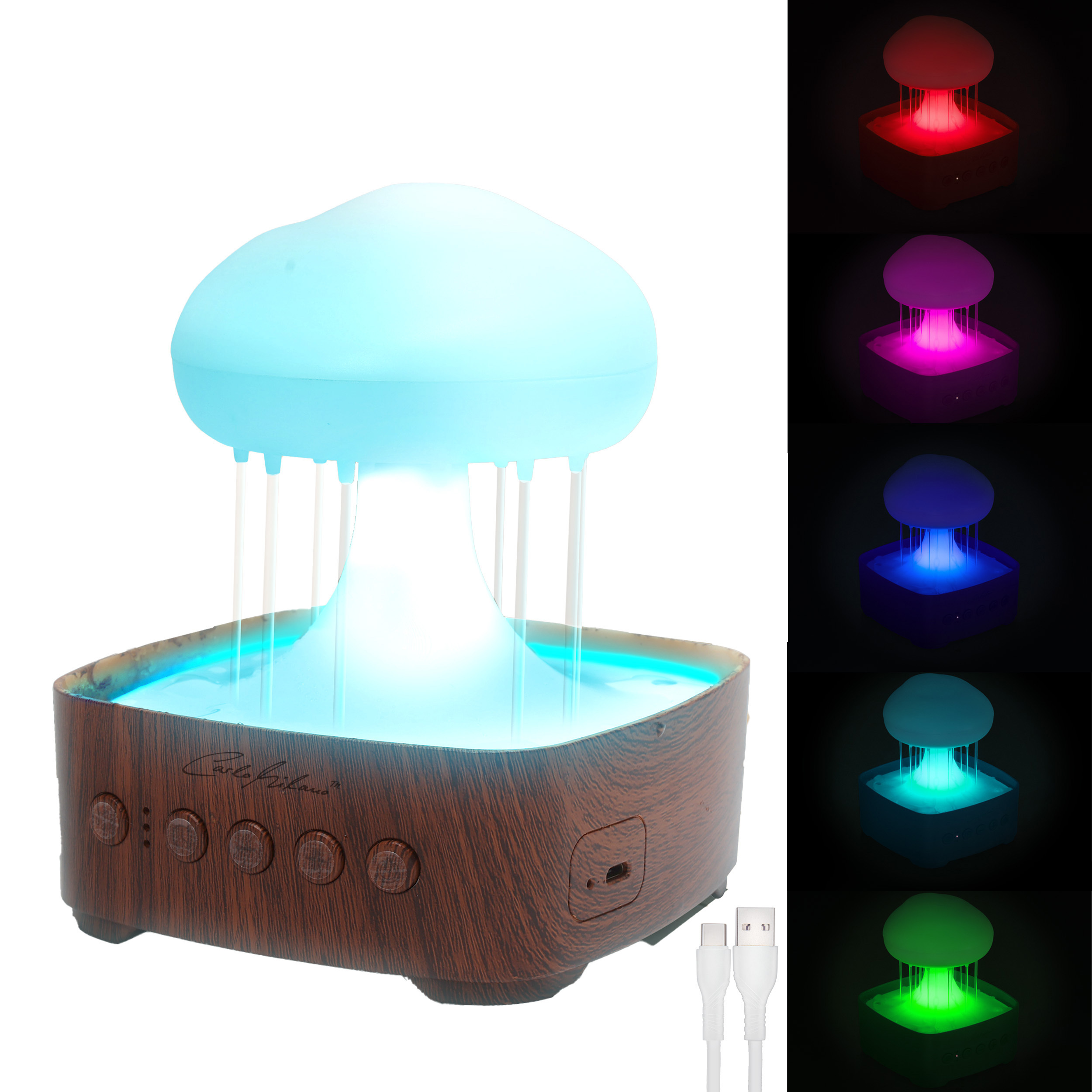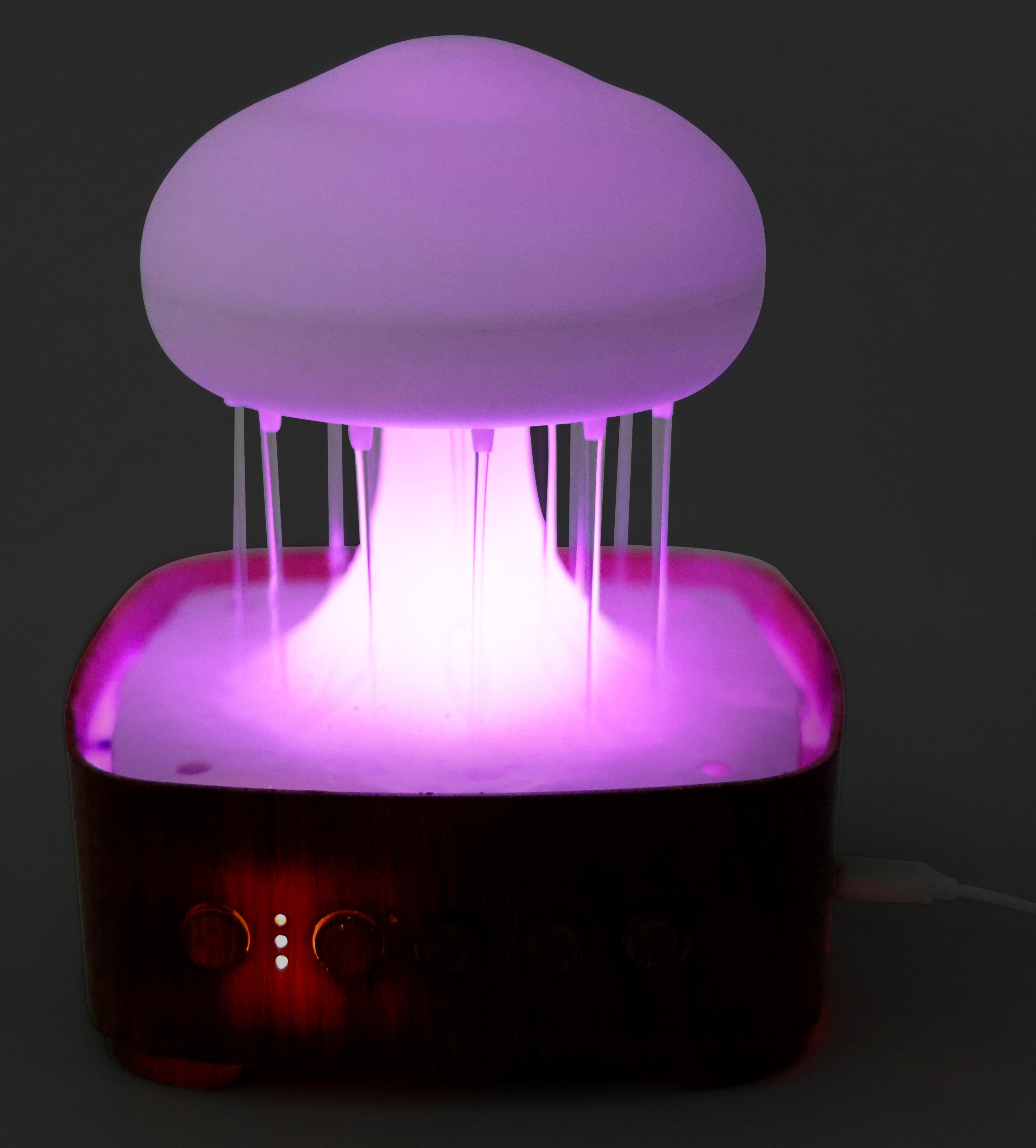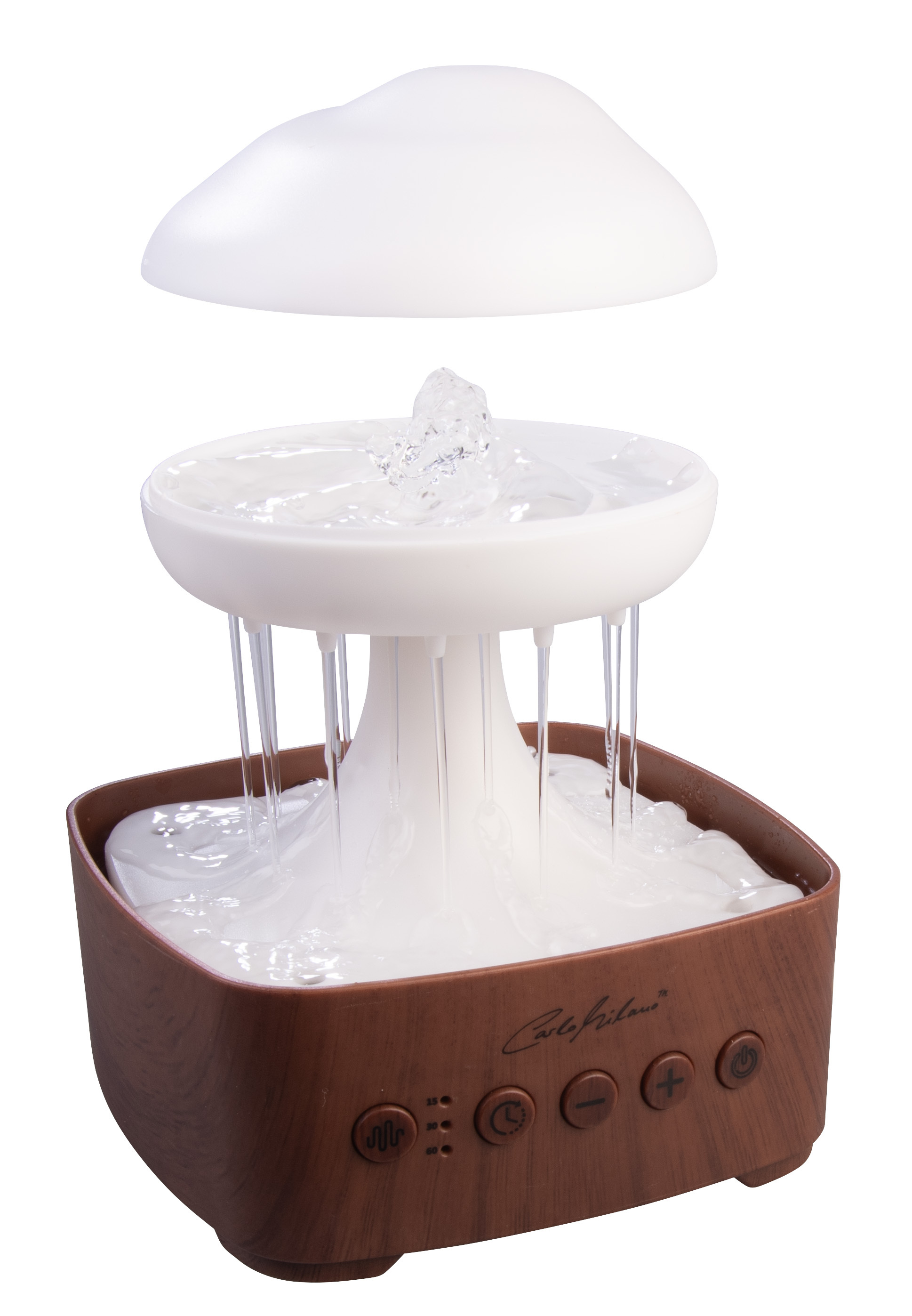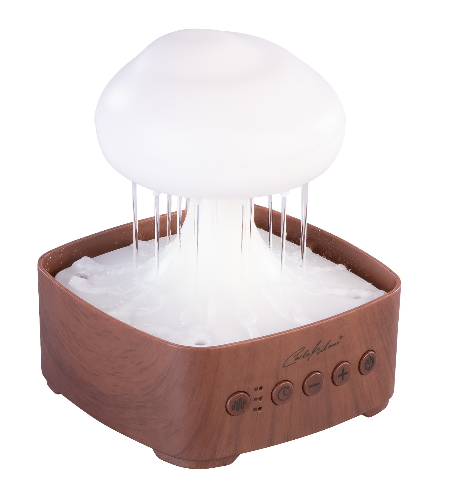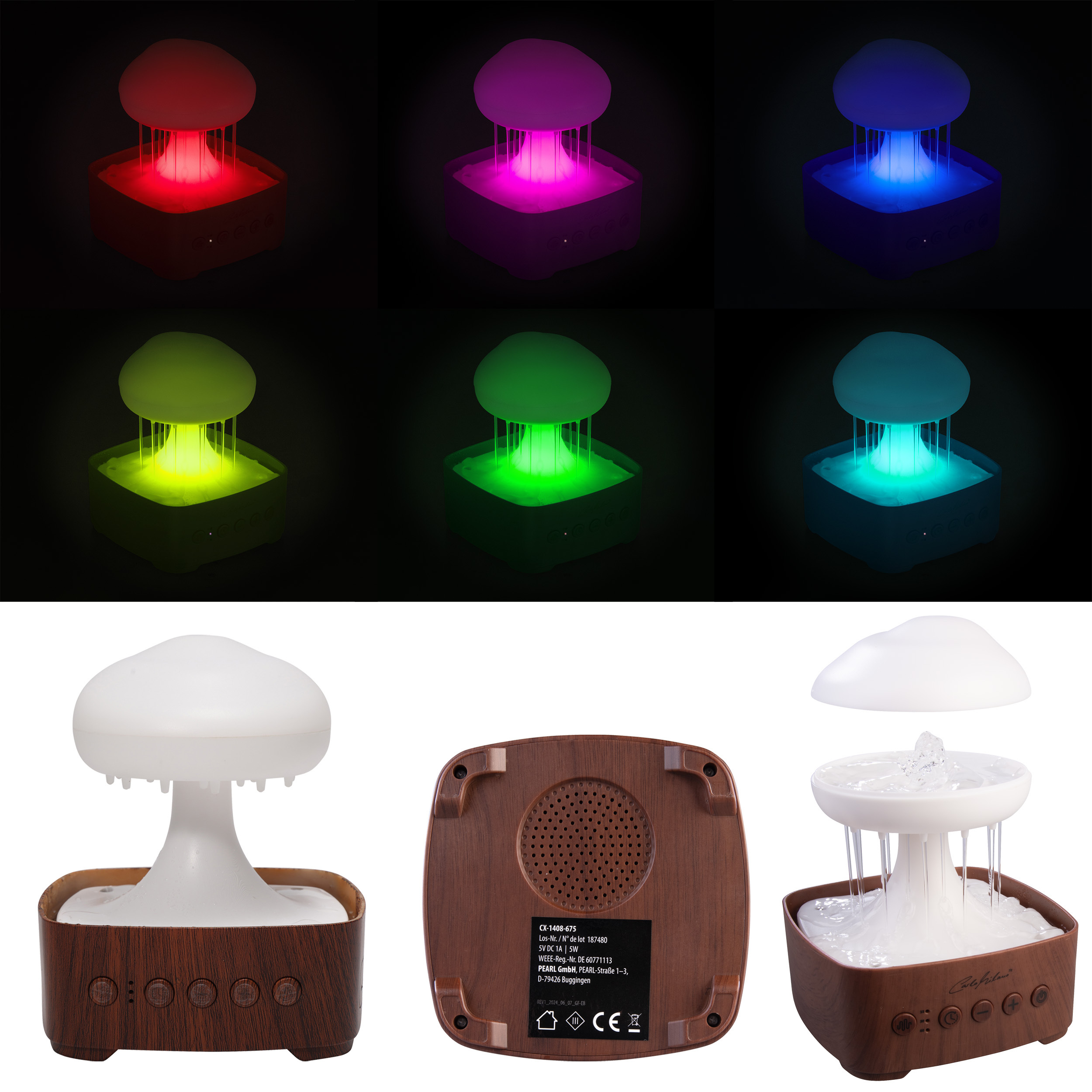 Sanfte Klänge wie Meeresrauschen, Regenschauer bis hin zu weißem Rauschen zur Entspannung und kleine Regenschauer aus der stilisierten Wolkenform beruhigen Augen und Nerven. Der Regenwolken-Luftbefeuchter von Carlo Milano erzeugt einen sanften Wassernebel für angenehm befeuchtete Atemluft und der LED-Farbwechsel sorgt für optische Harmonie. Ideal für Schlaf-, Wohn- und Arbeitszimmer.